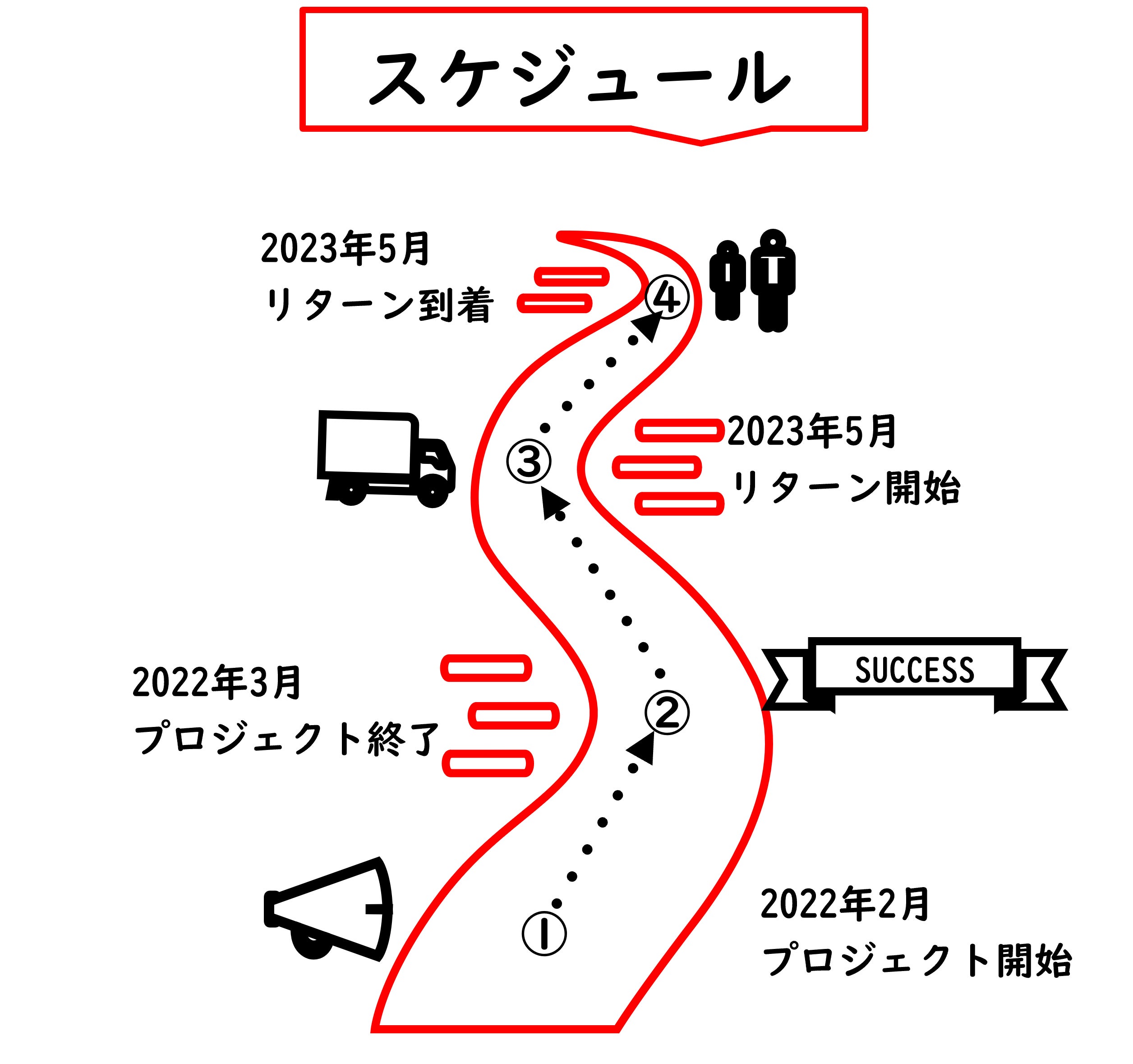 ※本文中に記載させていただいたスケジュールは、あくまでプロジェクト公開時点の予定です。支援の性質上、配送遅延のおそれがございます。