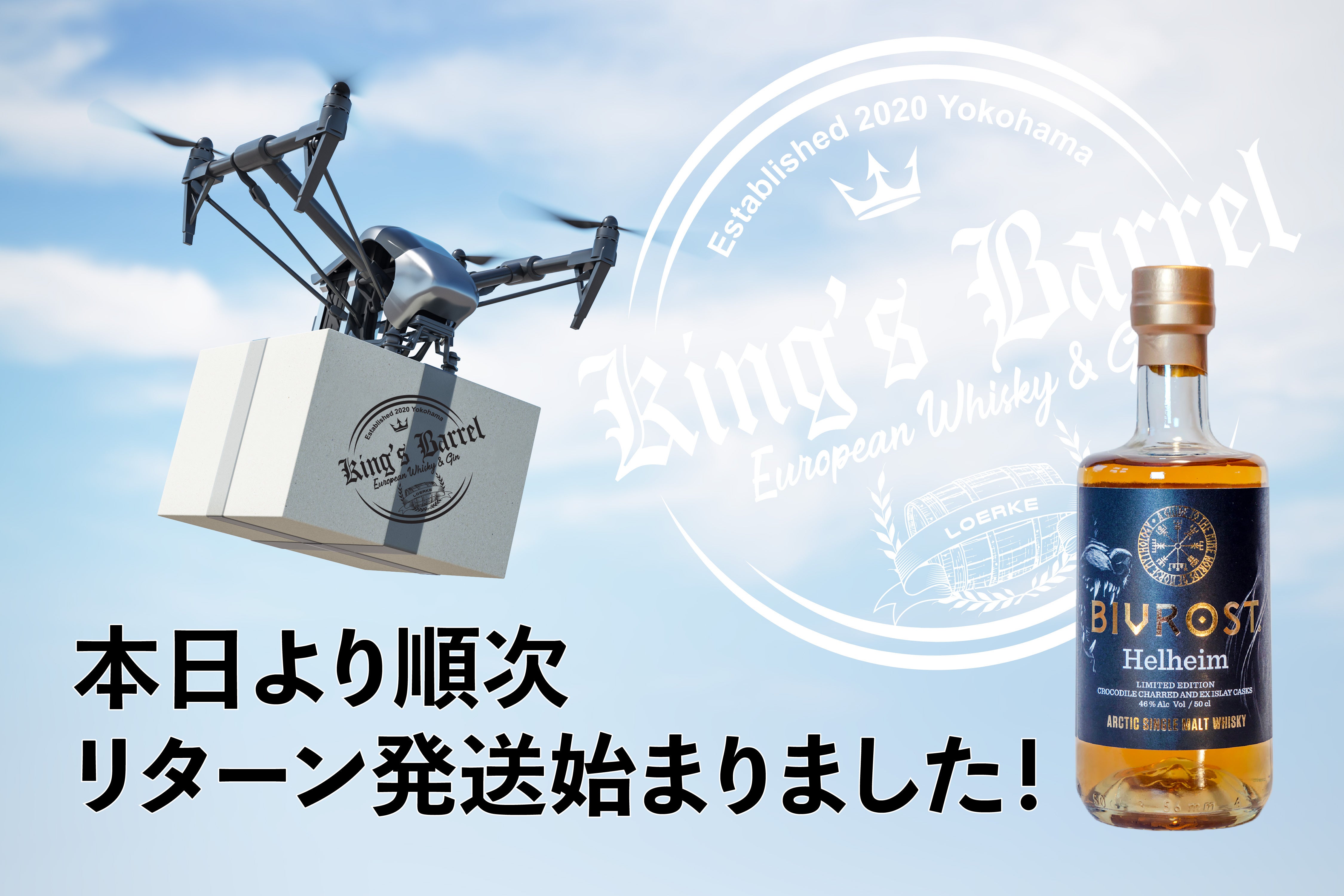 この度は本数限定の極上北極シングルモルトウイスキーHELHEIMのプロジェクトをご支援頂き、誠にありがとうございました!目標金額を大きく達成し、蒸溜所にも胸を張って報告することができました。これも支援者の皆さんのおかげです。ありがとうございました。さて、本日より早速リターン発送が始まりました!1本1本丁寧にチェックし、発送作業をコツコツと行っておりますので、一度に全てを発送!というわけにはいきませんが、今週中には全ての発送作業を終える見込みです。美味しいお酒が皆さんのお手元に届くまで、ほんのもうちょっとの間お待ちください。よろしくお願いします。KING's BARREL(キングズバレル)