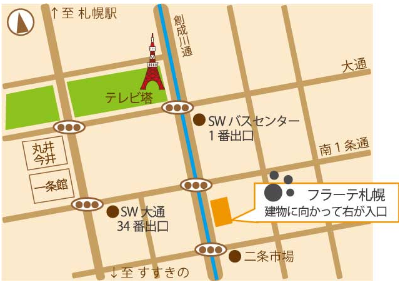 【所在地】:〒060-0052札幌市中央区南2条東1丁目1-12フラーテ札幌4F