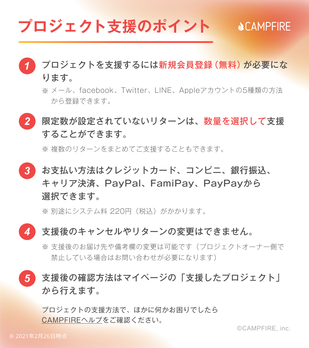 本プロジェクトはAll-in方式で実施します。目標金額に満たない場合も、計画を実行し、リターンをお届けします。