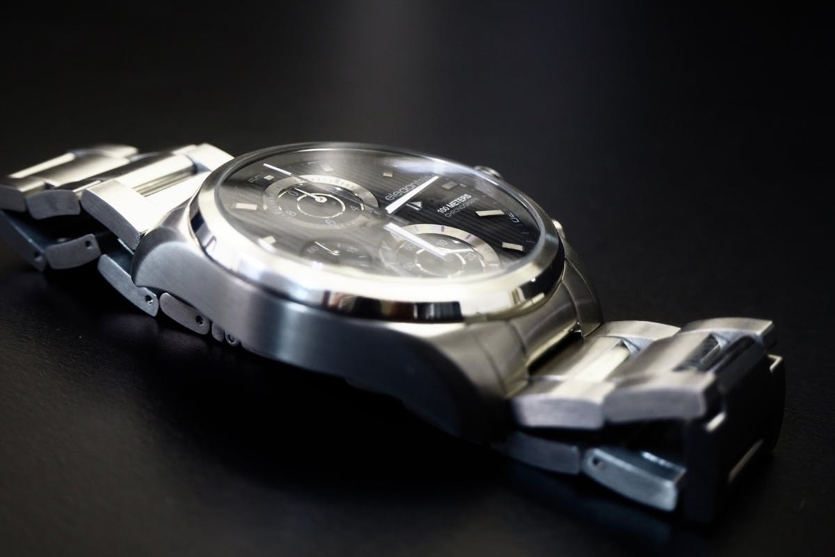 シンプルなデザインでありながら、黒い文字盤が、程良い存在感と重厚感をプラスしてくれます。