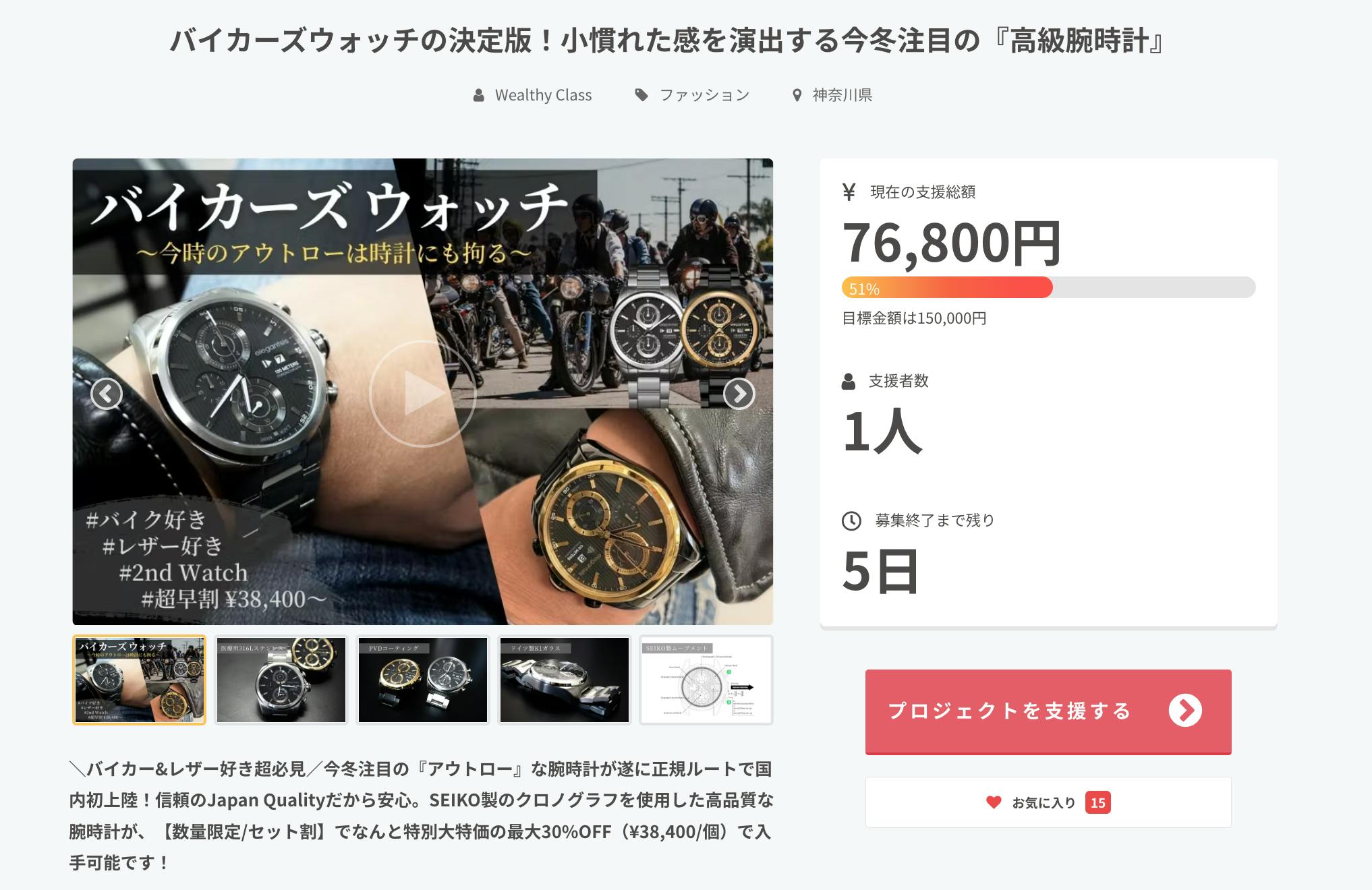2023/01/03 17:25新年明けましておめでとうございます。Wealthy Classです!!昨年公開となりました、『バイカーズウォッチ』プロジェクトですが、公開終了まで、早くも『残り5日』となりました。本商品は、日本製のムーブメントに加えて、デザイン性やサイズ感もコンセプトに相応しい内容になっております。しかもとにかく『安い』!!2023年のツーリングや年末年始でお買い求めされたアイテムとの無骨な男コーデに、是非お役立て頂けたらと思っております!!是非とも本年も心温まる応援の程、何卒宜しくお願い申し上げます♪ もっと見る
