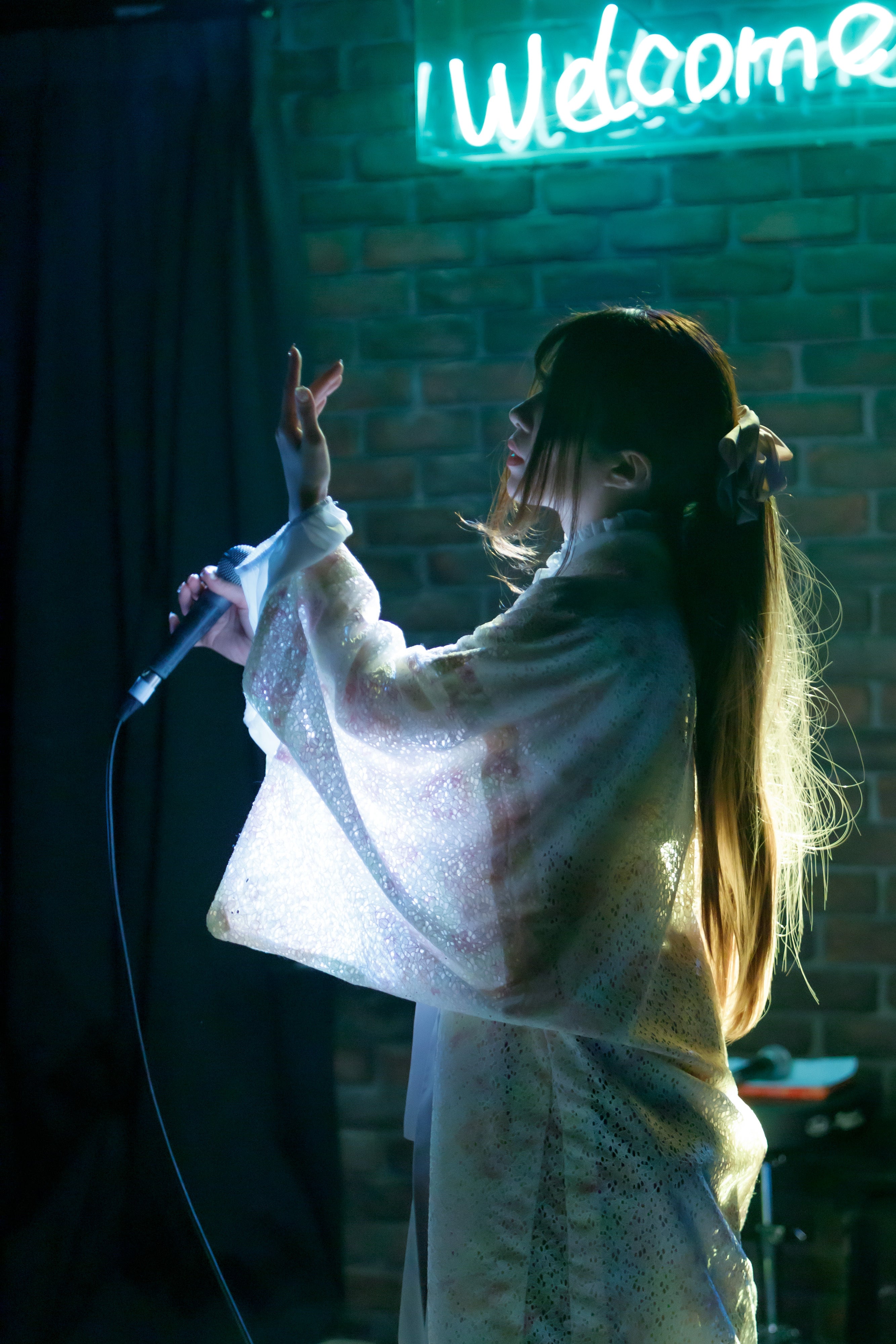 歌は好きだけど自己肯定感が低い…そんな生き方を続けており周りがプロやアイドルという環境にいた為自分はステージでキラキラ出来る程の技量もスター性もない(上がり症で歌詞も覚えられないし)と遠慮して過ごしていましたが、心のどこかで憧れを持っている中でコロナ流行をきっかけに「後悔のない人生」への気持ちが大きくなり、一度諦めた声優への道も再起をかけ特技に「歌」と書けるように始めたボイトレを機に友人からの誘いで一度きりと思っていた初めてのライブ出演。