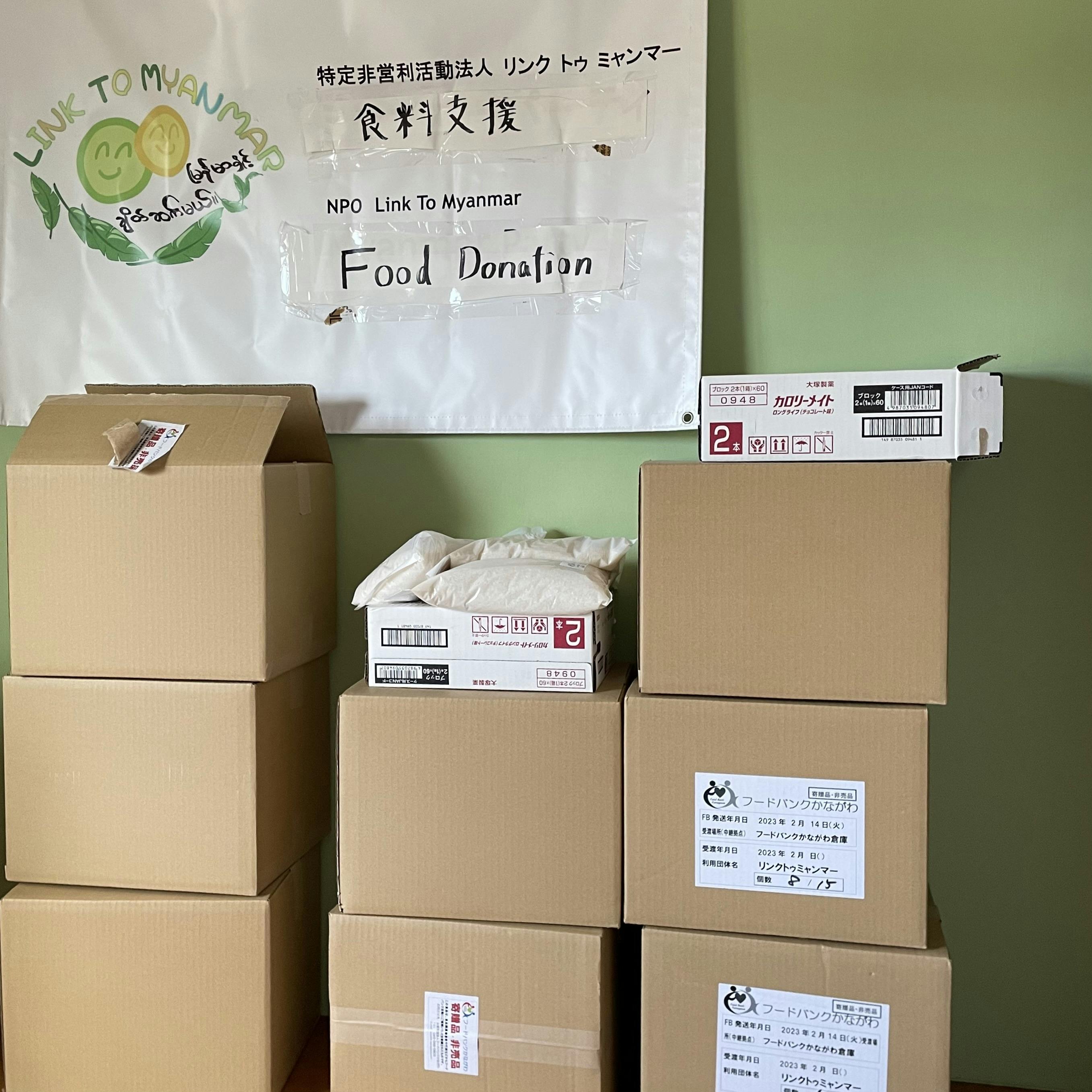 当会ではフードバンクかながわ様からいただいた食品を、食料支援を必要とする在日ミャンマー人の方々にお配りしております。