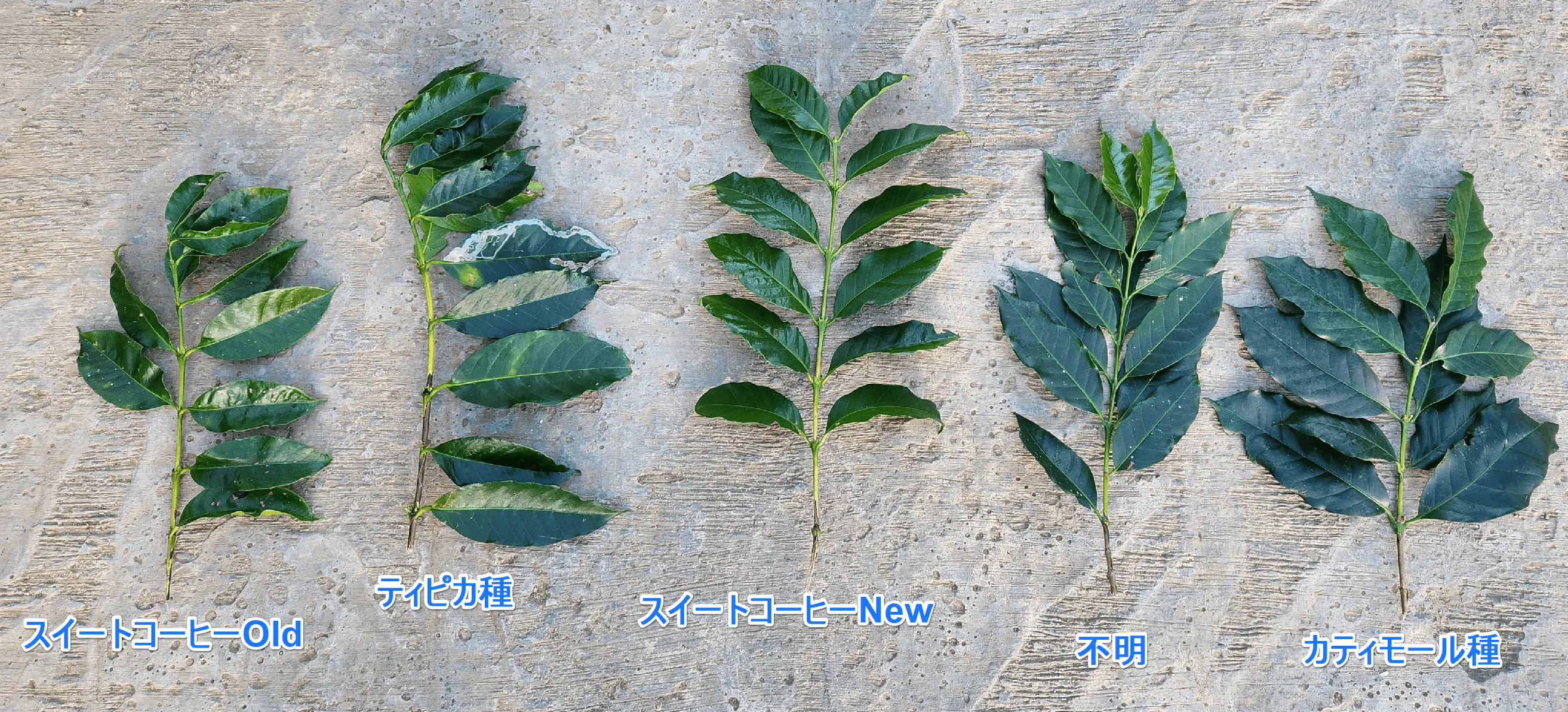 Sweet Coffee New、Sweet Coffee Old、他在来のティピカ種、カティモール種、不明品種。