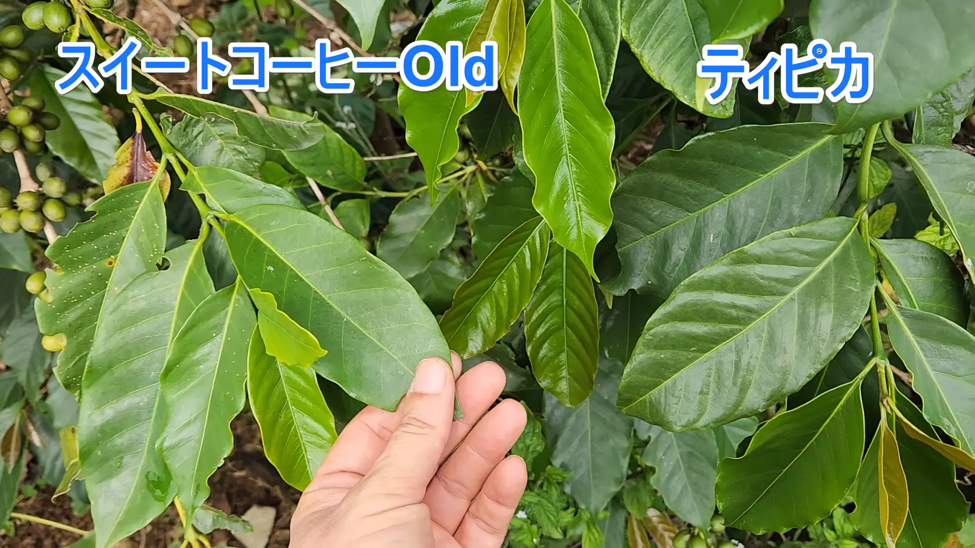 上の写真はスイートコーヒーOldとティピカ。たまたま隣同士に生えていました。
