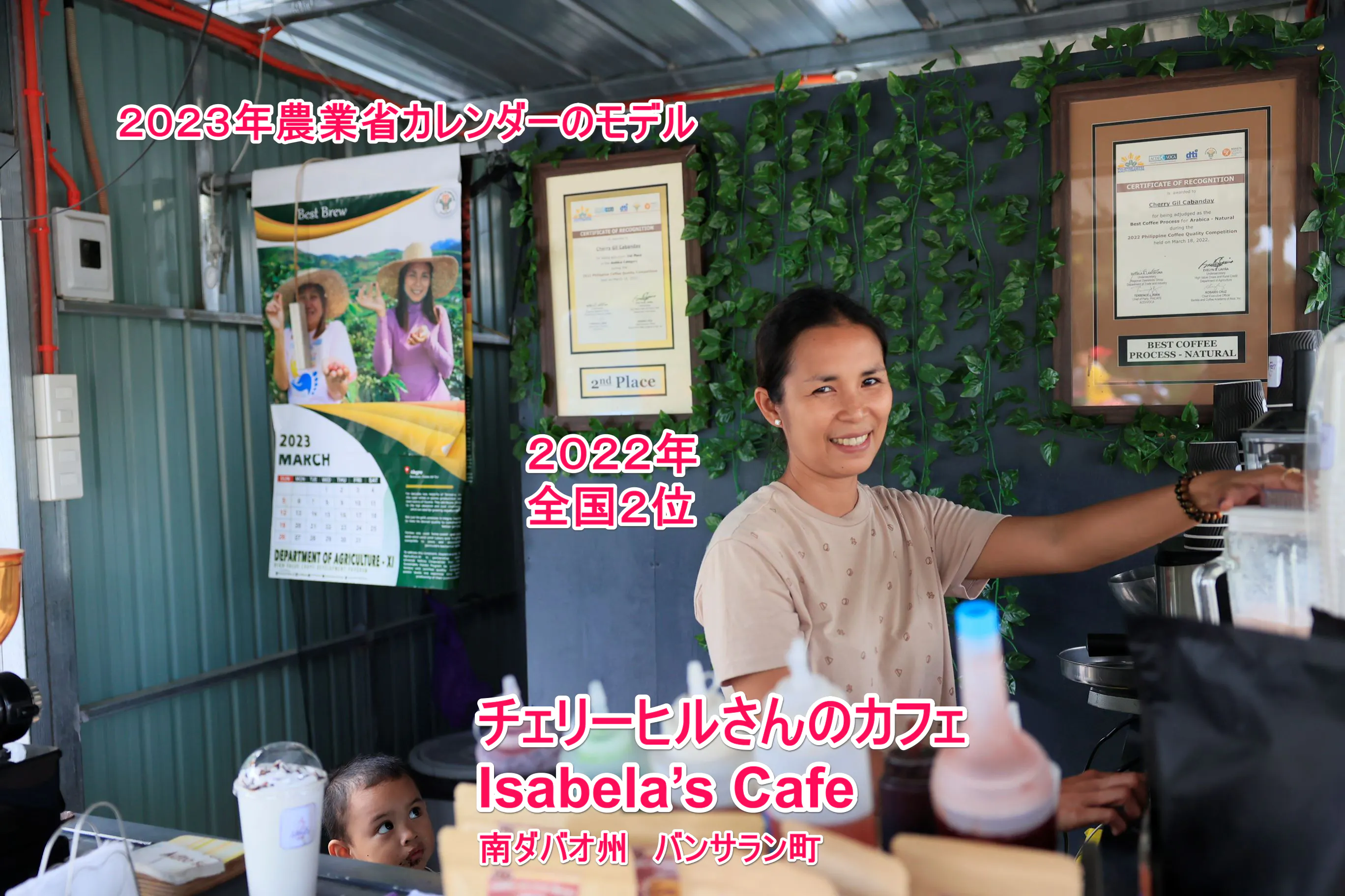 チェリーさんは、幹線道路沿いにイサベルカフェ(Isabel's Cafe)もオープン。寄って飲むことが出来ます。