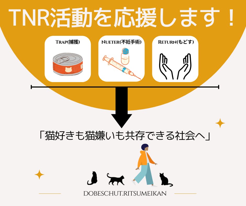 TはTrap(捕獲)、NはNueter(不妊手術)、RはReturn(元の場所に戻す)