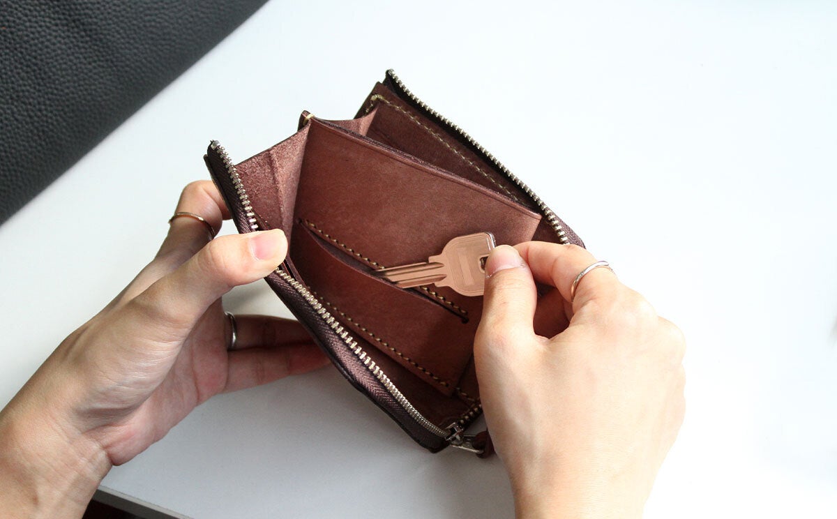 従来はポケットの奥底まで指を突っ込まないと小銭が取れず、使いにくさを感じていた構造に一工夫を加えてみました!