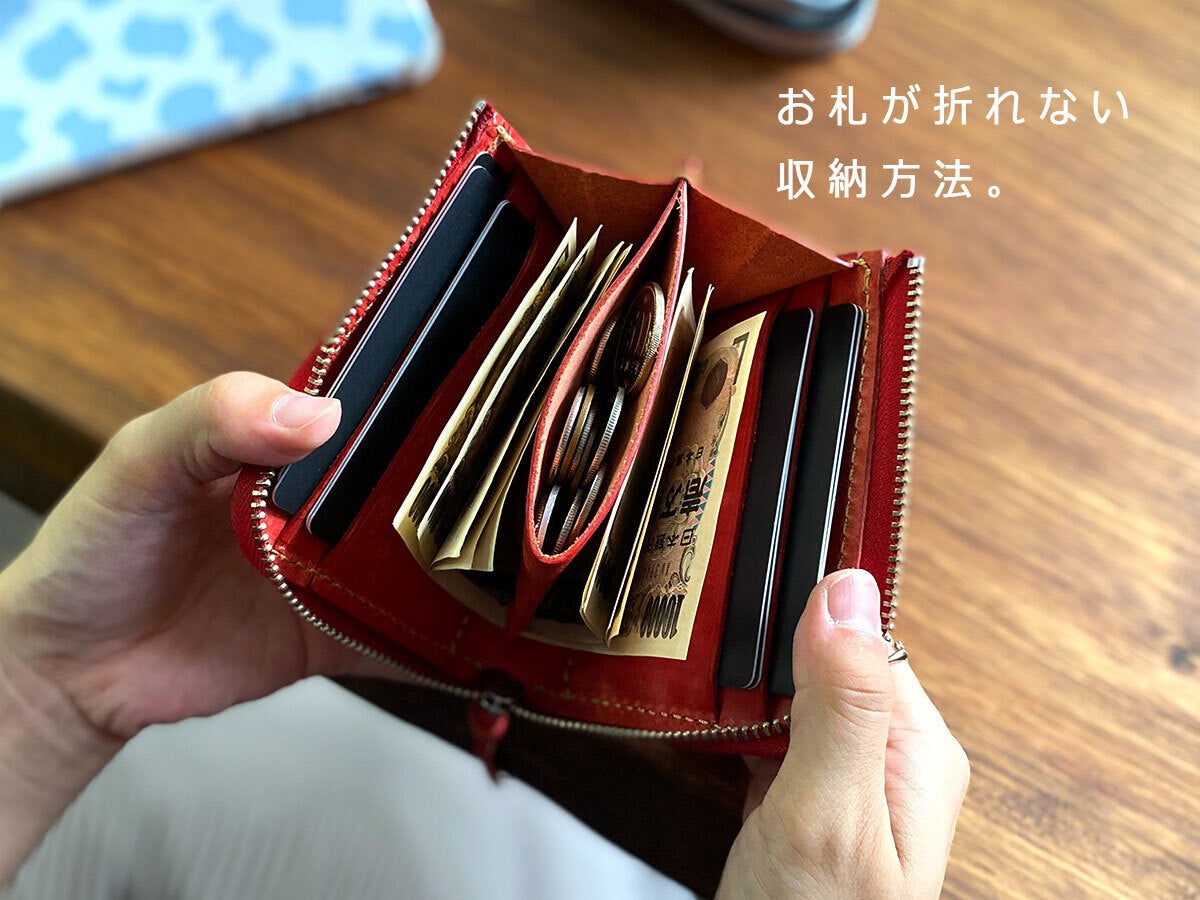 たくさん中身を入れても財布の形をキレイに保つことも可能に。