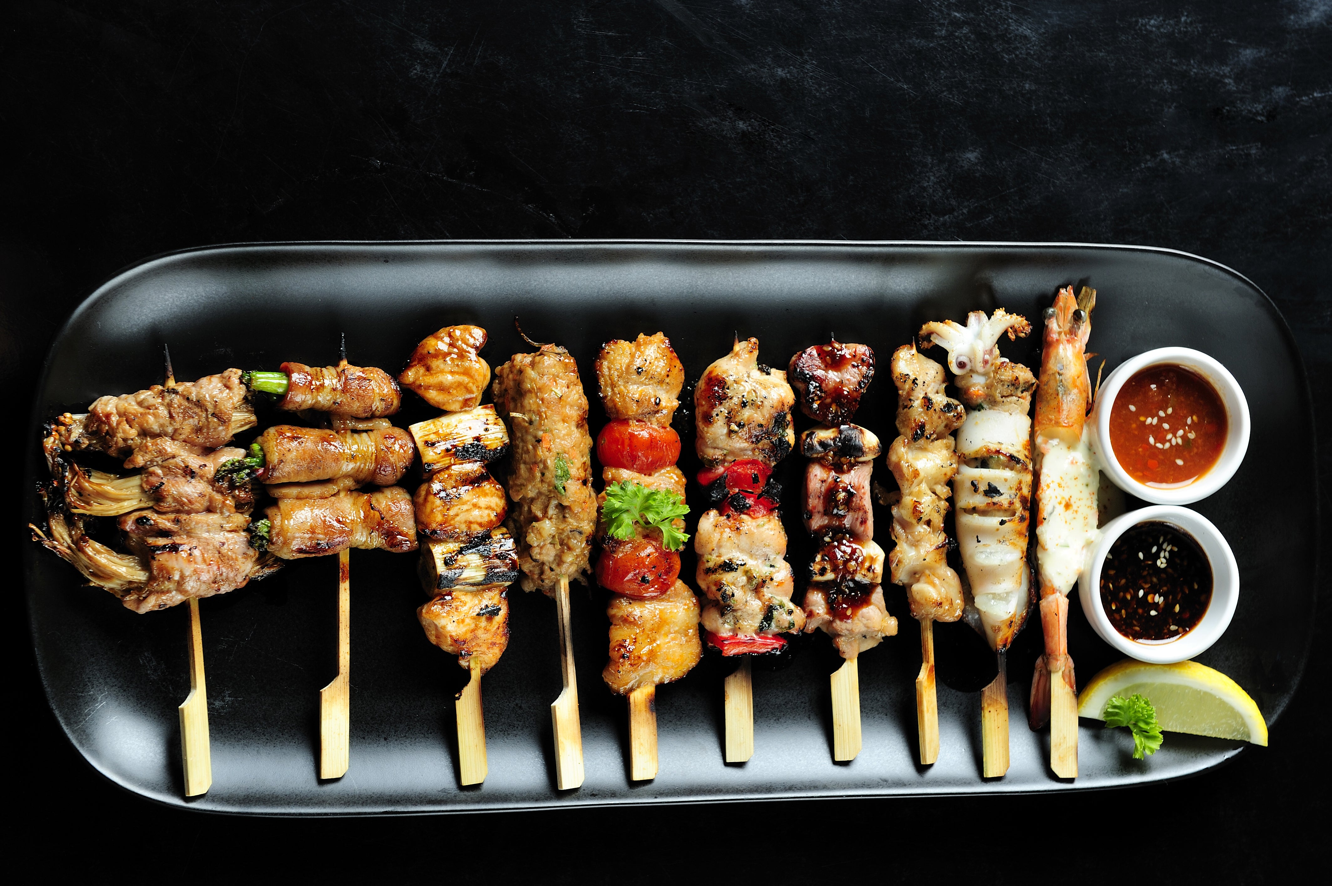 色々な種類のジビエ串のセットを基本として、