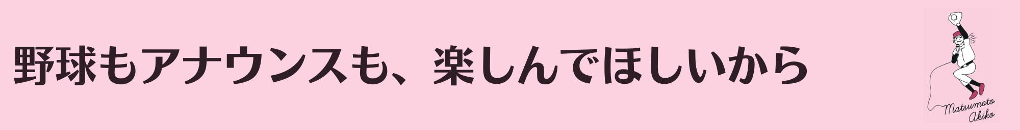 野球もアナウンスも大好きだから、野球好きなお子さんには野球を力いっぱいやってもらいたいし、野球ママさんたちにも野球部のマネージャーさんたちにも、野球とアナウンスのどちらも楽しんでほしいのです。