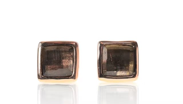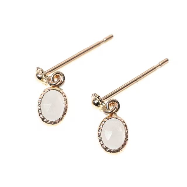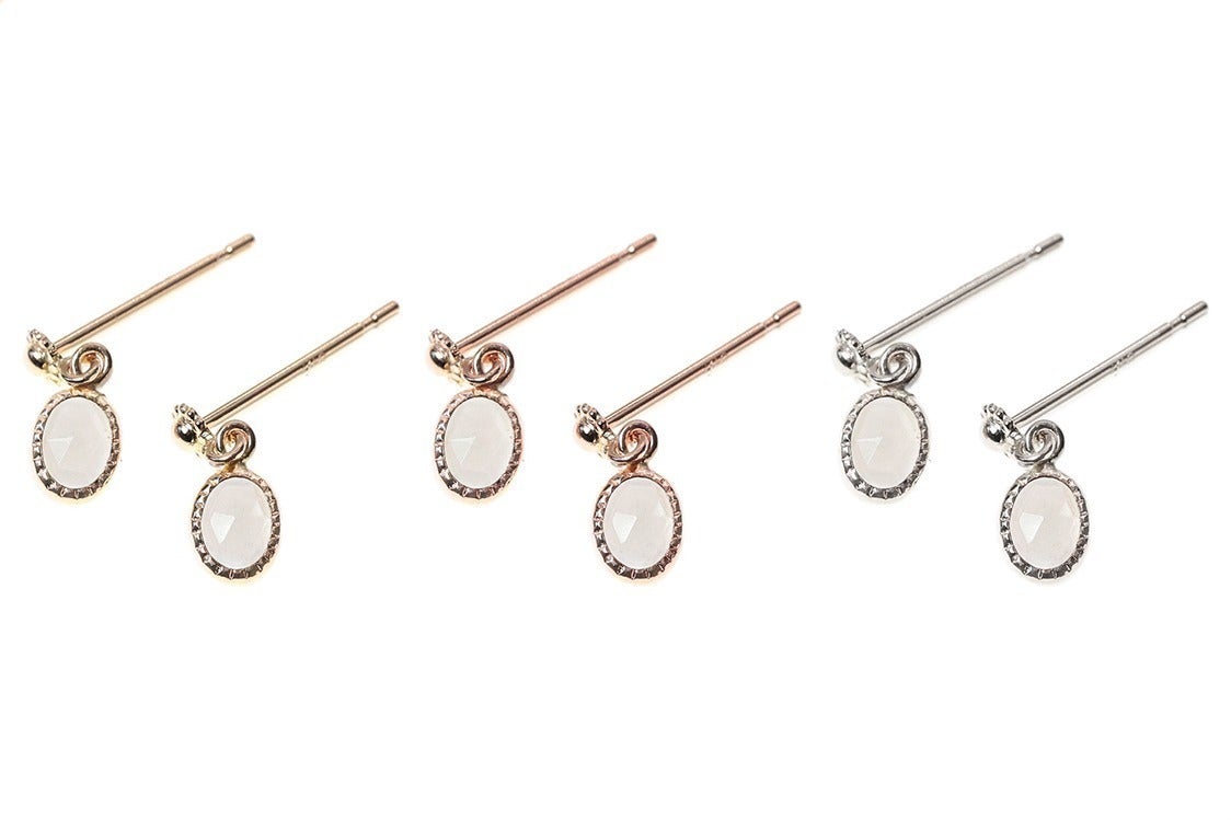 ※透明度がある宝石なので、特性上、上の写真のように下地が白い場所に置くと白っぽく、肌色や衣類のような色がついた上から着用していただくとしっかりとブラウングレーの色彩が現れます。