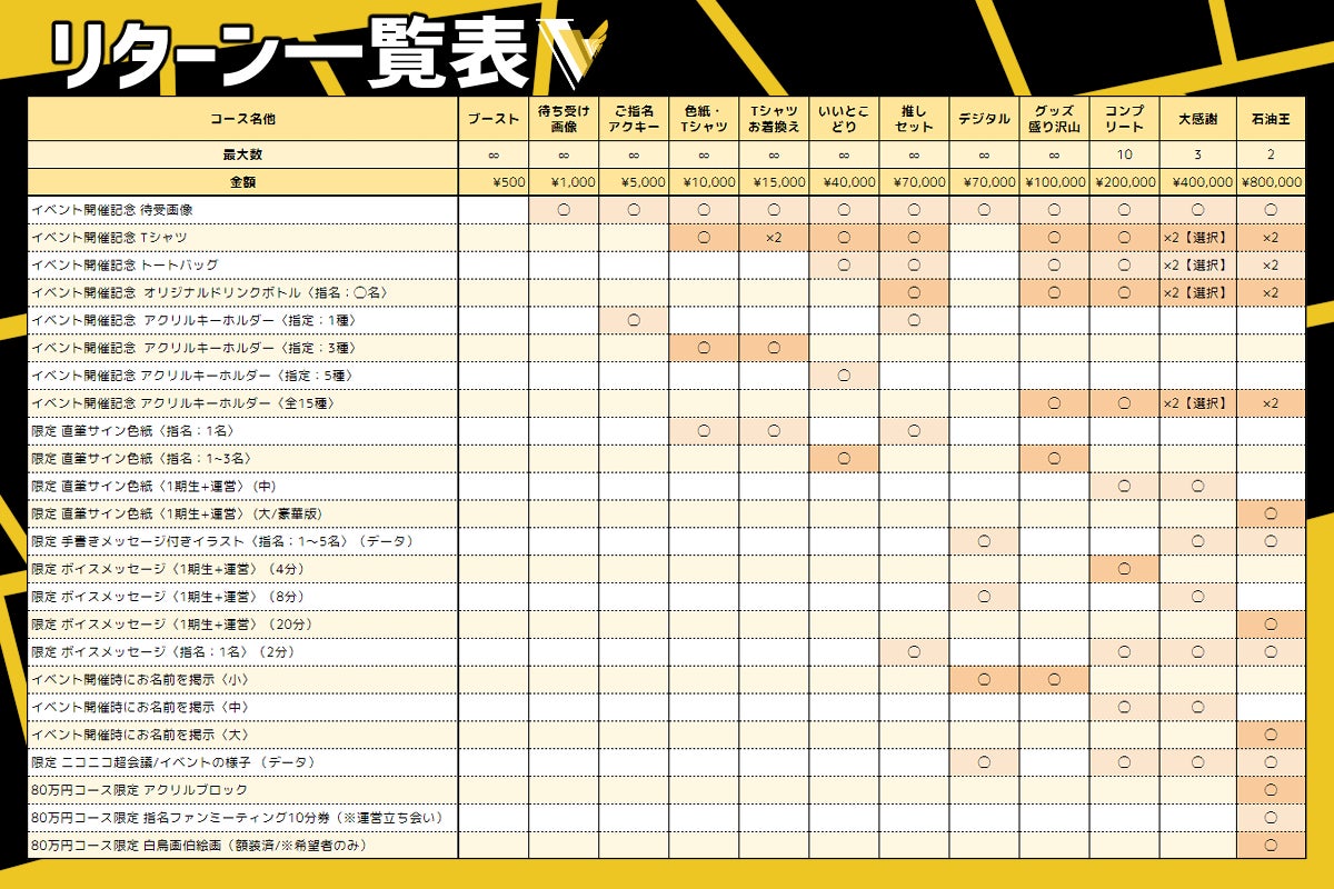 目標金額1,000,000万円を達成いたしましたため、目標としておりました下記のイベントが開催決定いたしました!