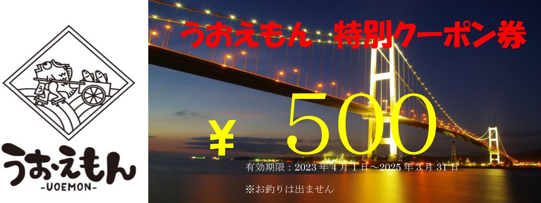 ・うおえもんで使用可能な1000円分の特別クーポン券を送らせていただきます。