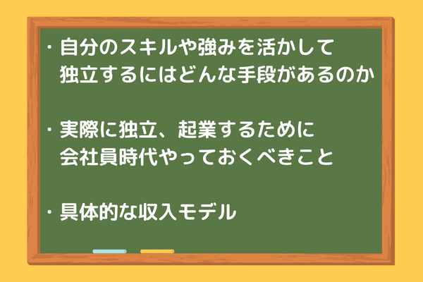 また、起業に興味を持ったとしても、身近に起業した方がいなければ「具体的に何をすれば良いのか」「会社員の時にしておくべきことは何か」イメージもしづらいことでしょう。