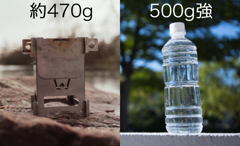 コンパクトストーブの材質はステンレスやチタンが一般的ですが、StormFireは、「ステンレス-チタン合金*」という材質にたどり着きました。軽く耐熱性能が高い上に頑丈でパネルの反りも抑えられるという、両者の「いいとこ取り」を実現した材質です。これにより、ソロキャンパーの理想を叶えるストーブが実現したのです。