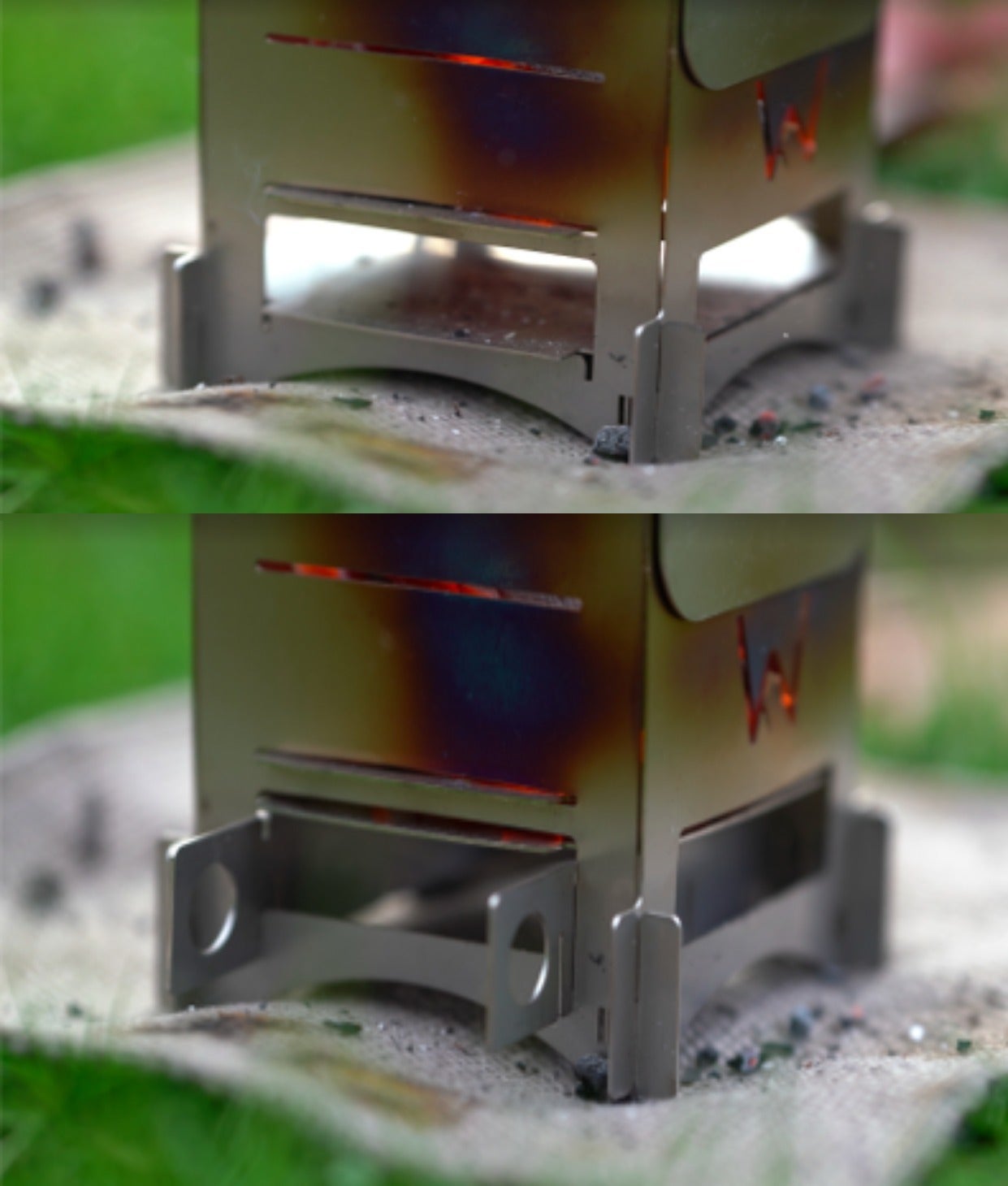 ついにコンパクトストーブのすべての弱点を克服したものが現れました! ポットホルダーの丸い穴もよく考えられていますね。(マードック55)