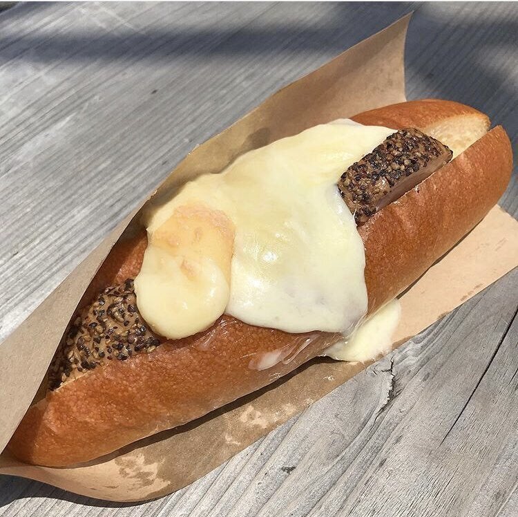 店主の地元にある歴史あるパン屋さんから取り寄せる甘みがある自慢のバンズにボリュームあるソーセージ、そして看板といえるラクレットチーズをかけるだけで至福の味わいのラクレットチーズドッグが完成!一度は食べるべき!