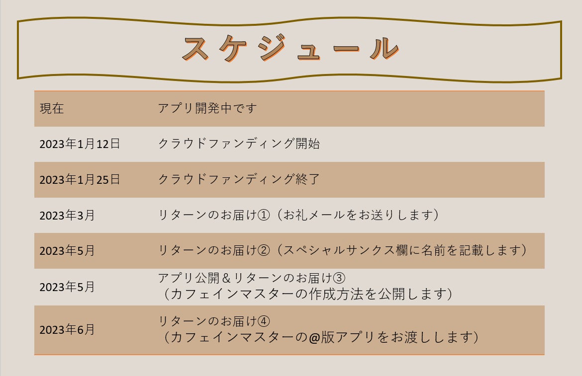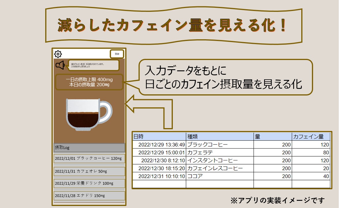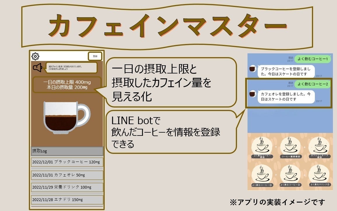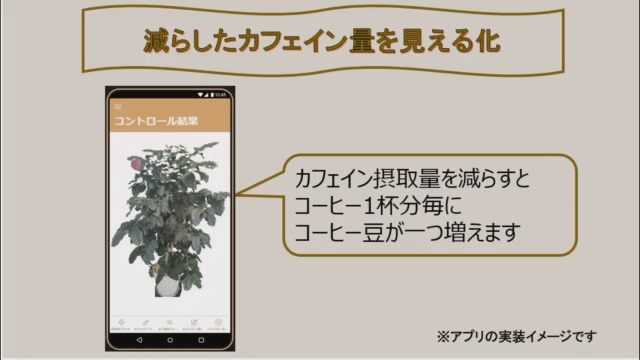 カフェインを取りすぎてしまわないようお助けするアプリを開発します。