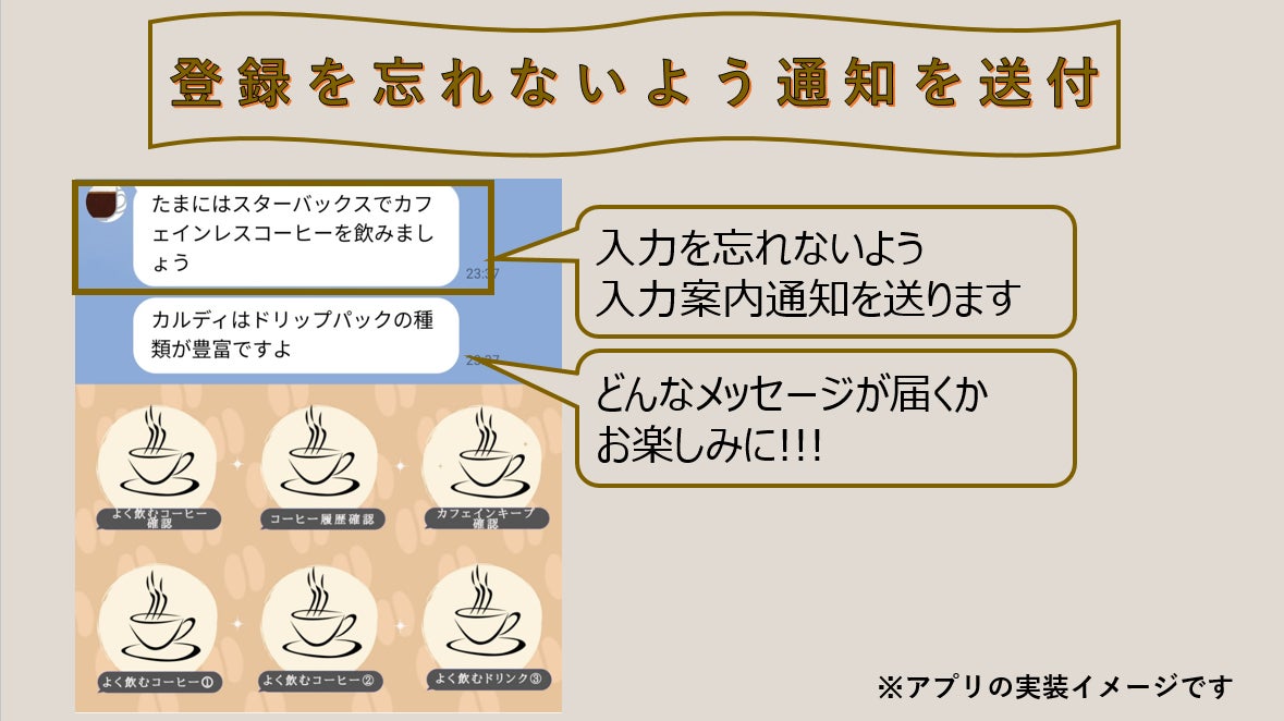 入力通知に従って、『コーヒー情報を登録したらちょっといいことがある』と思えば、