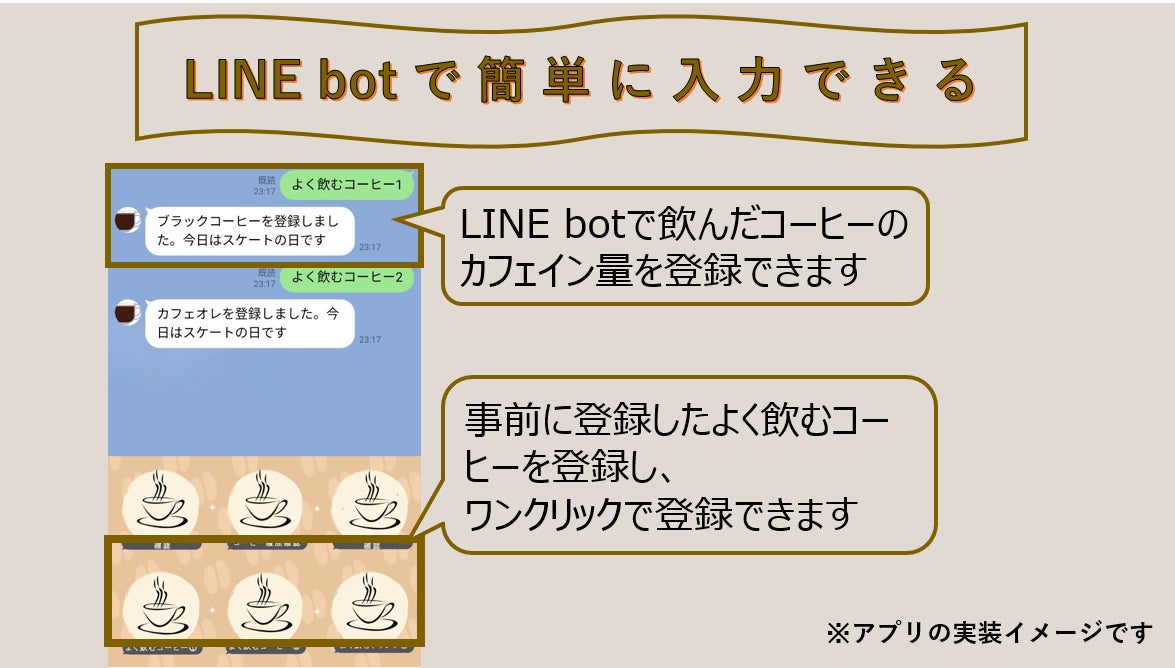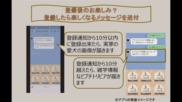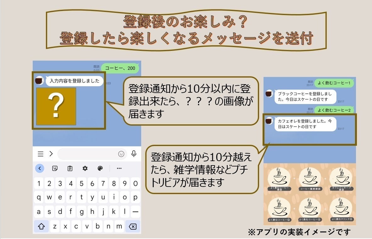 ★登録完了メッセージ画像とカフェイン摂取量の画像をお好きな画像に差し替えます★