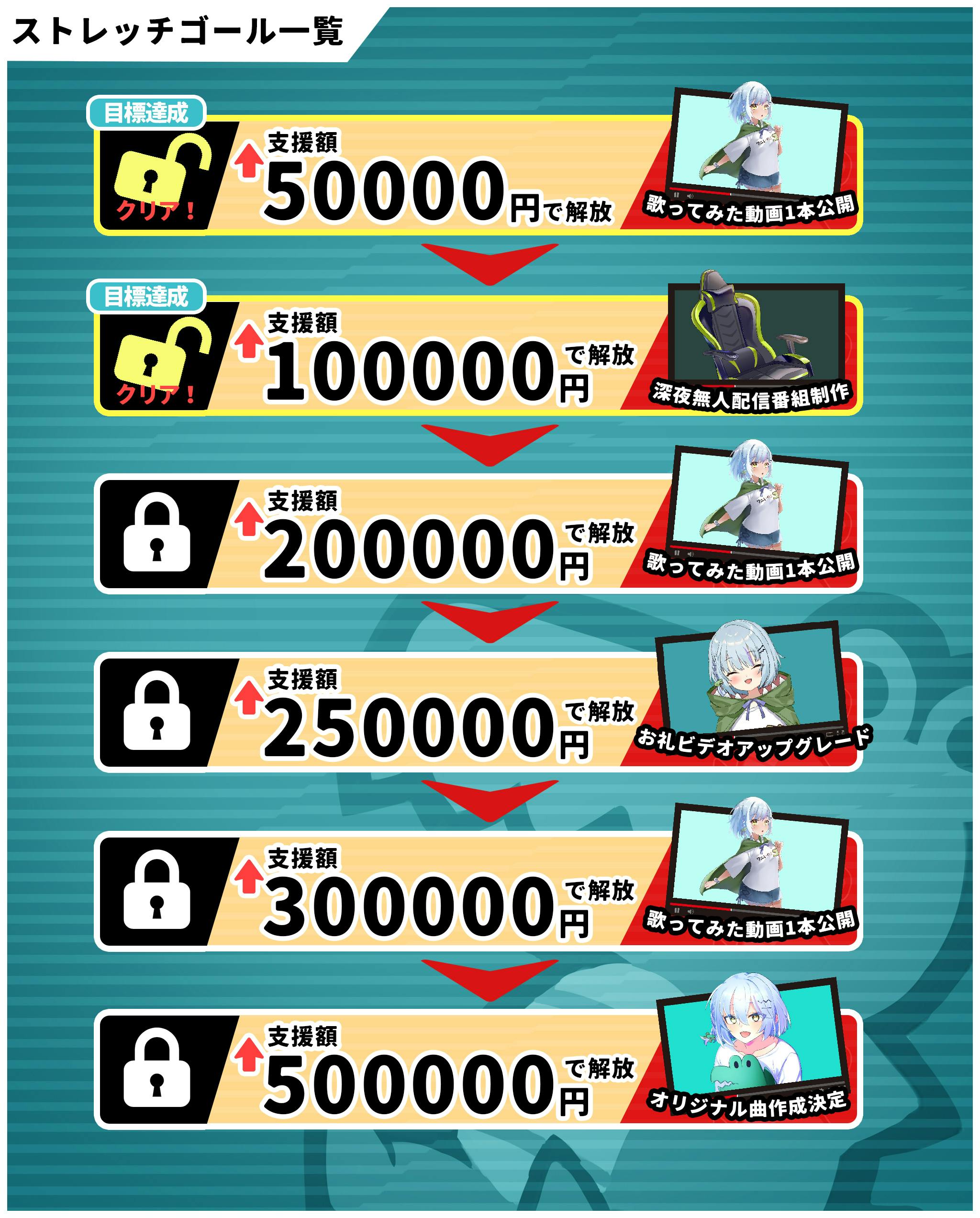 ストレッチゴールはこちらになります、もしかしたら途中で新しい項目が解放されるので