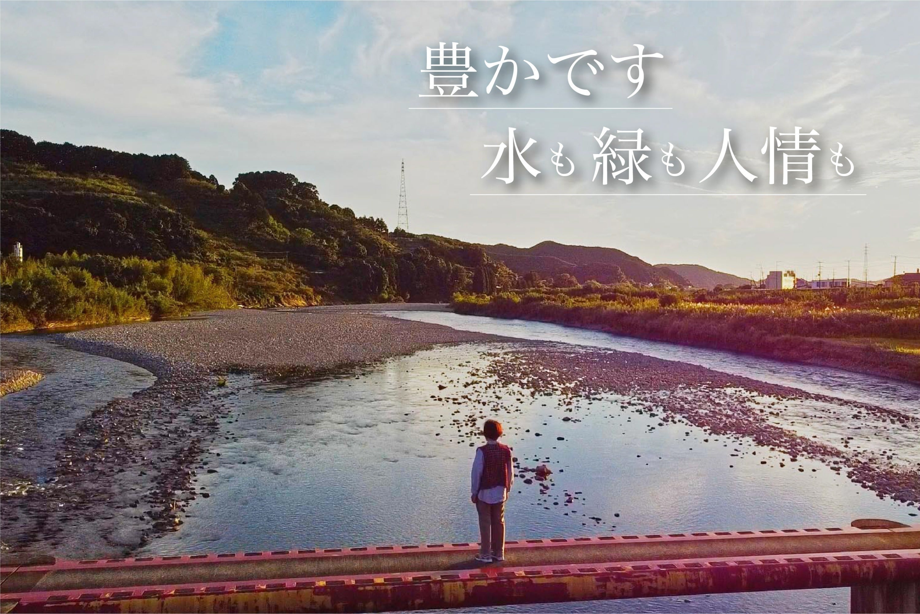 上富田町のキャッチフレーズは「豊です。水と緑と人情も」。