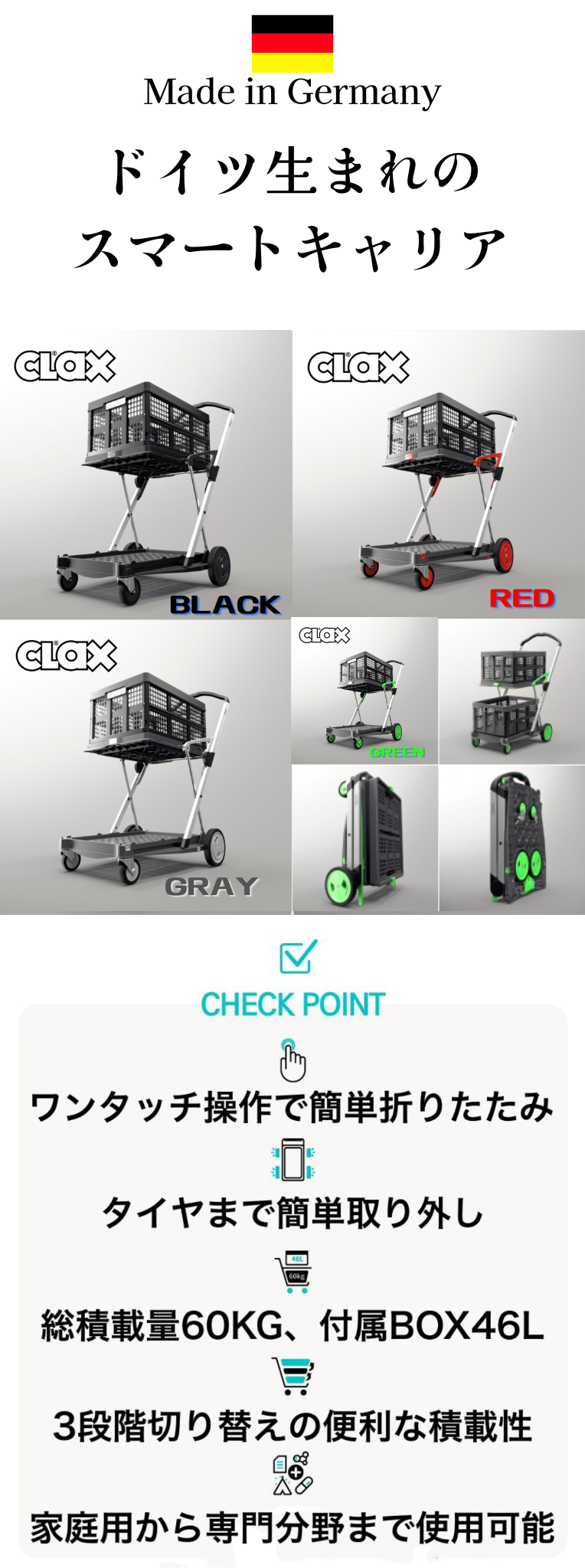 皆様こんにちは、実行者のKR Globalです。私達は世界のモノづくりとそこで頑張る人達を応援する事業者です。この度は、ドイツ生まれの「CLAX CART」にご興味をお持ち頂き有難うございました。この老舗メーカーさんは、100年の歴史とその実績に縛られることなく時勢に柔軟な姿勢をお持ちです。メーカーとして社会へ新しい生活の提案を積極的に心がけ、今もなお成長しています。是非これをきっかけに、皆様にたくさんこの会社の製品をご紹介出来たらと思っています。プロジェクト終了までどうぞ温かい応援を宜しくお願い致します。<スタッフ一同>