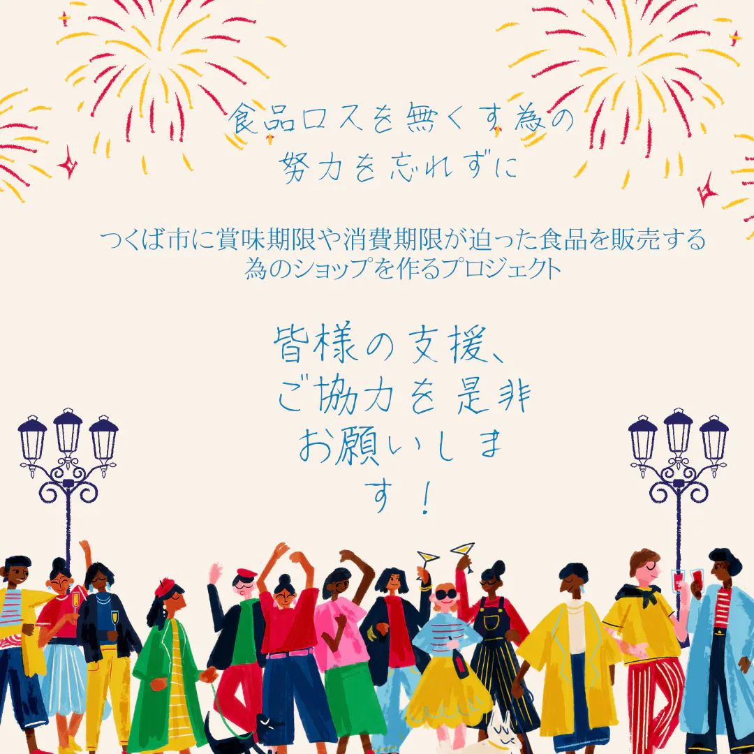 今年も7,000品目の値上げ予定になっていますこのまま行くと必ずフードロスが加速するのは目に見えています、どうしても実現したい今回のプロジェクトです。地元が元気・笑顔・住みたい街、またつくばに戻りたいそんな街に出来る様に皆の繋がりで何とか実現させて下さい。ご理解・ご協力・ご支援、よろしくお願い致します。