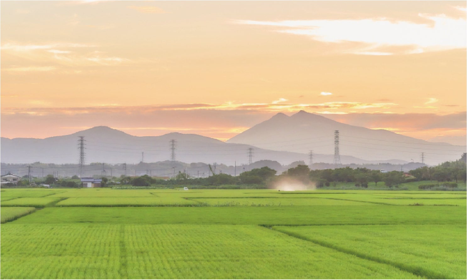 夕暮れの筑波山(男体山、女体山)