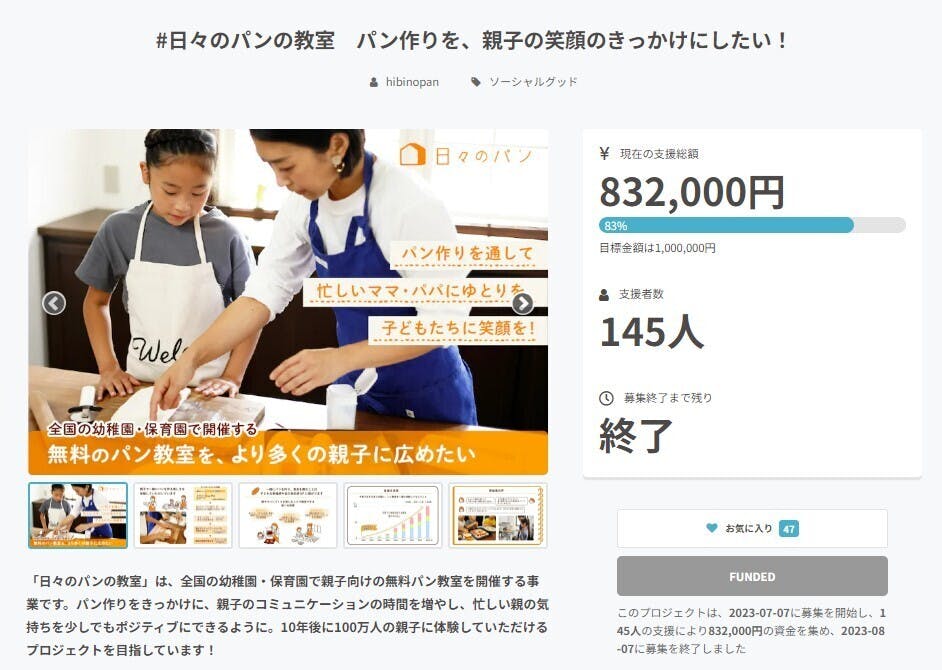 私たち日々のパンの活動を多くの方に知ってもらいたい思いで、クラファンに挑戦しました。
