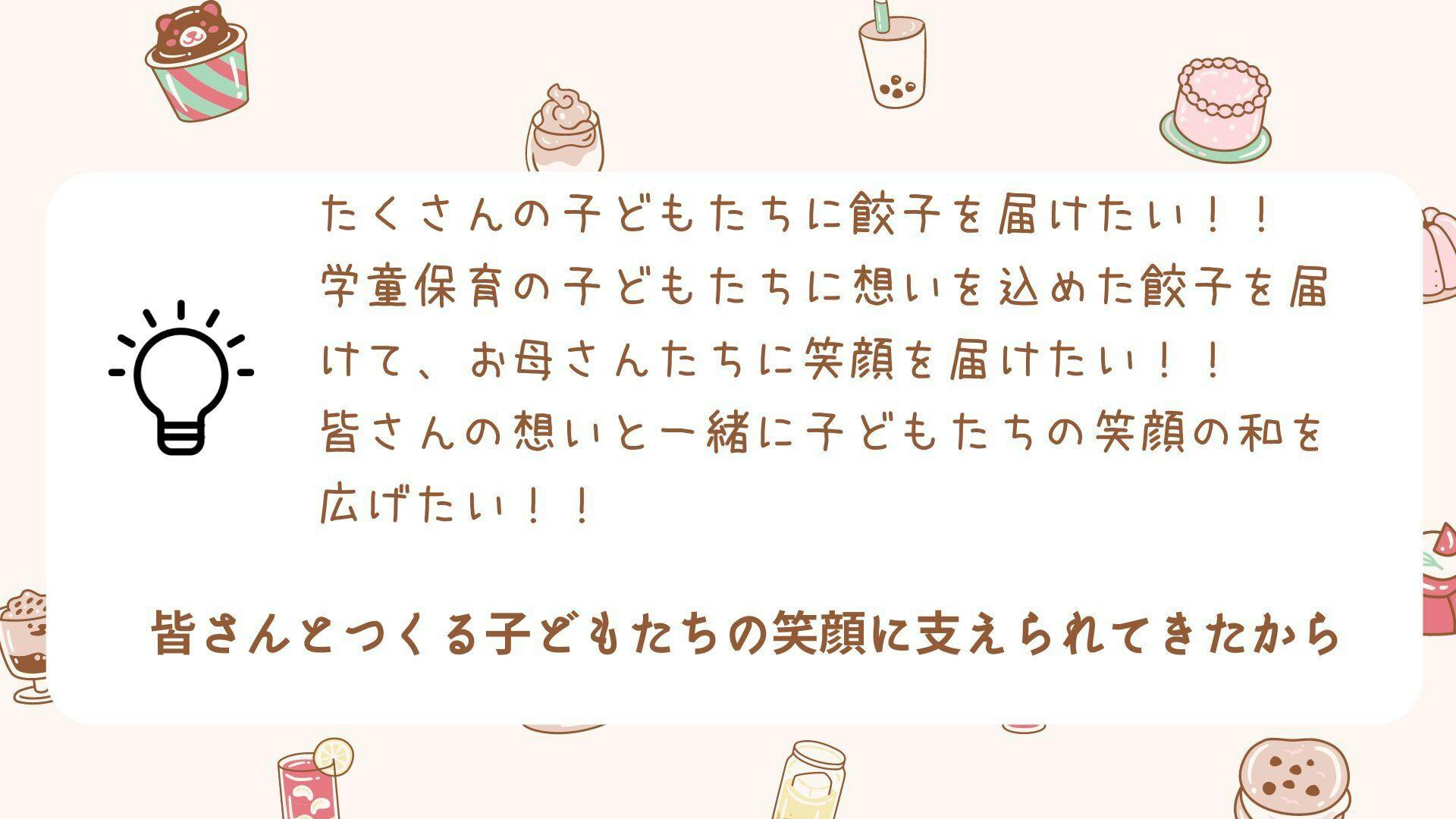 より多くの子どもたちに餃子を届けるため、皆さんのお力をお貸しください。