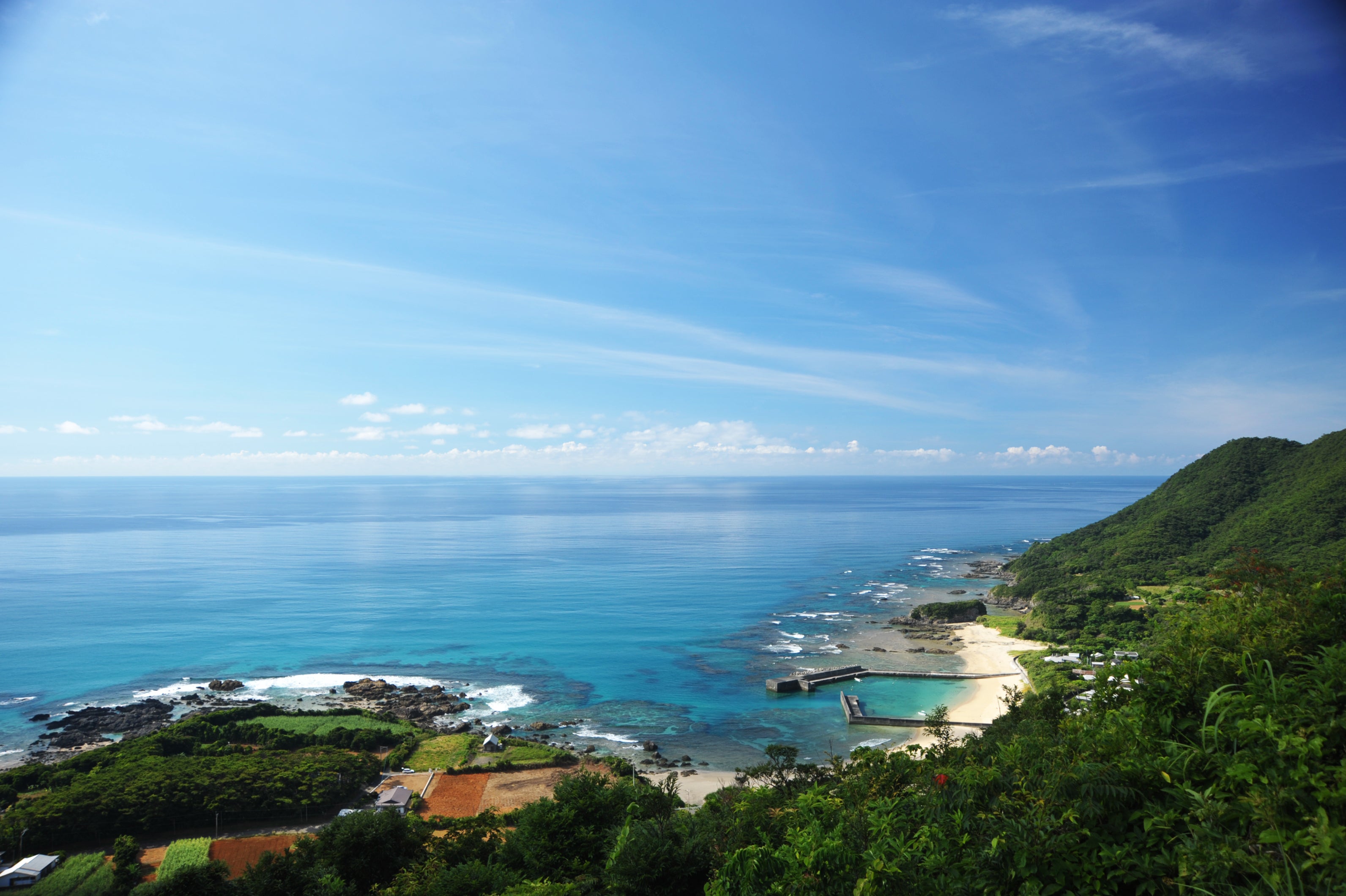 奄美大島は、鹿児島本土と沖縄本島の中間くらいにある島です。日本の離島のなかでは2番目に大きい島で、面積は沖縄本島の8割ほど。島の多くの部分が森であり、絶滅危惧種の「アマミノクロウサギ」をはじめ、珍しい動植物にあふれています。「アマミンブルー」とも呼ばれる海の美しさも特徴で、透明度の高さや色鮮やかな魚も見ることができます。