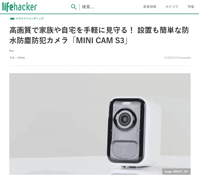 先日、Lifehackerで「MINI CAM S3」を紹介して頂きました。