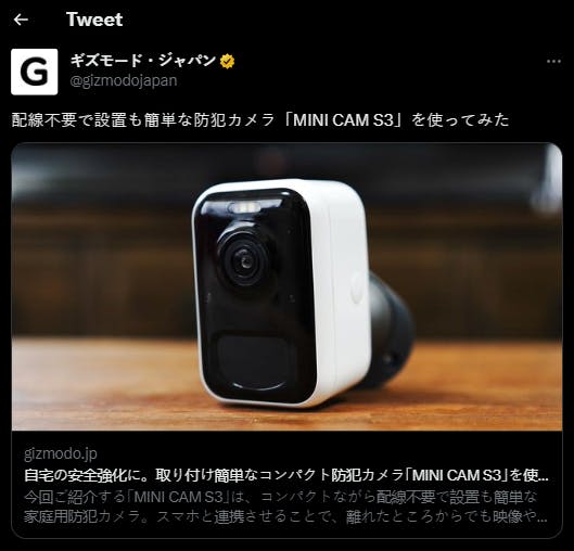 先週、GIZMODOさんがTwitterで「MINI CAM S3」 をシェア・拡散しました〜