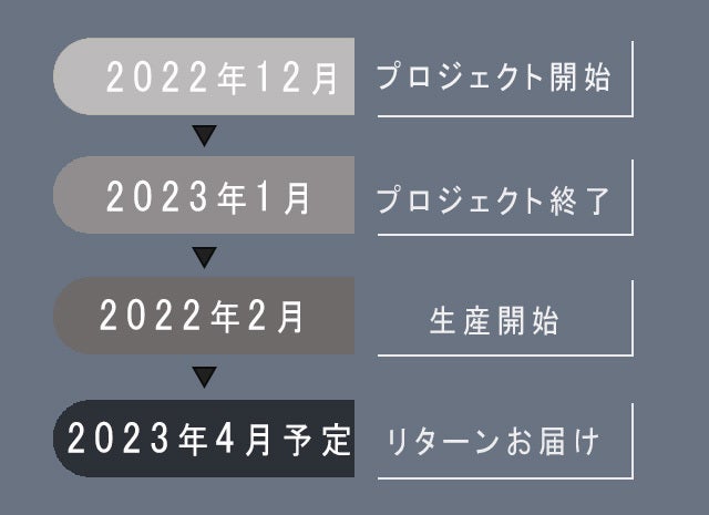 ※本文中に記載させていただいたスケジュールは、あくまでプロジェクト公開時点の予定です。クラウドファンディングの性質上、配送遅延の恐れがございます。
