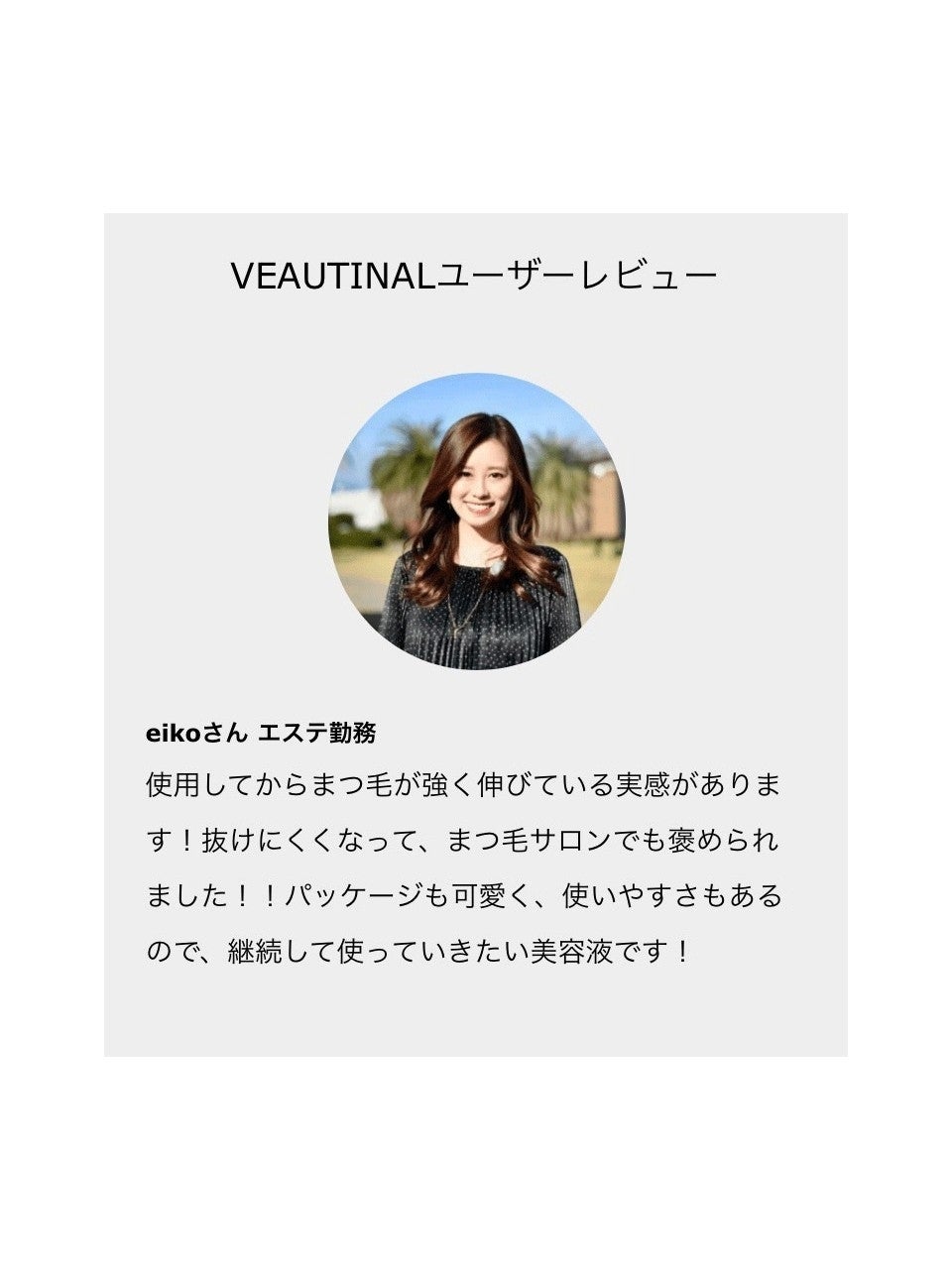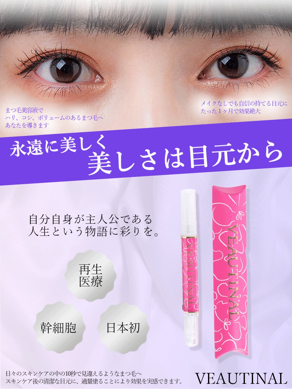 美容液の吸収、毛周期をスムーズにする為、アミノ酸が複数配合したVEAUTINAL独自の成分を使用し、美しいまつ毛へ導きます。