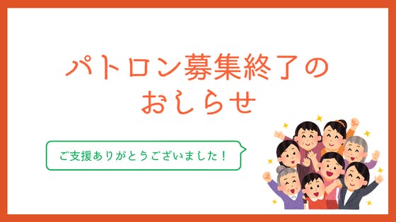 【ご支援ありがとうございました!】パトロン募集終了のおしらせ