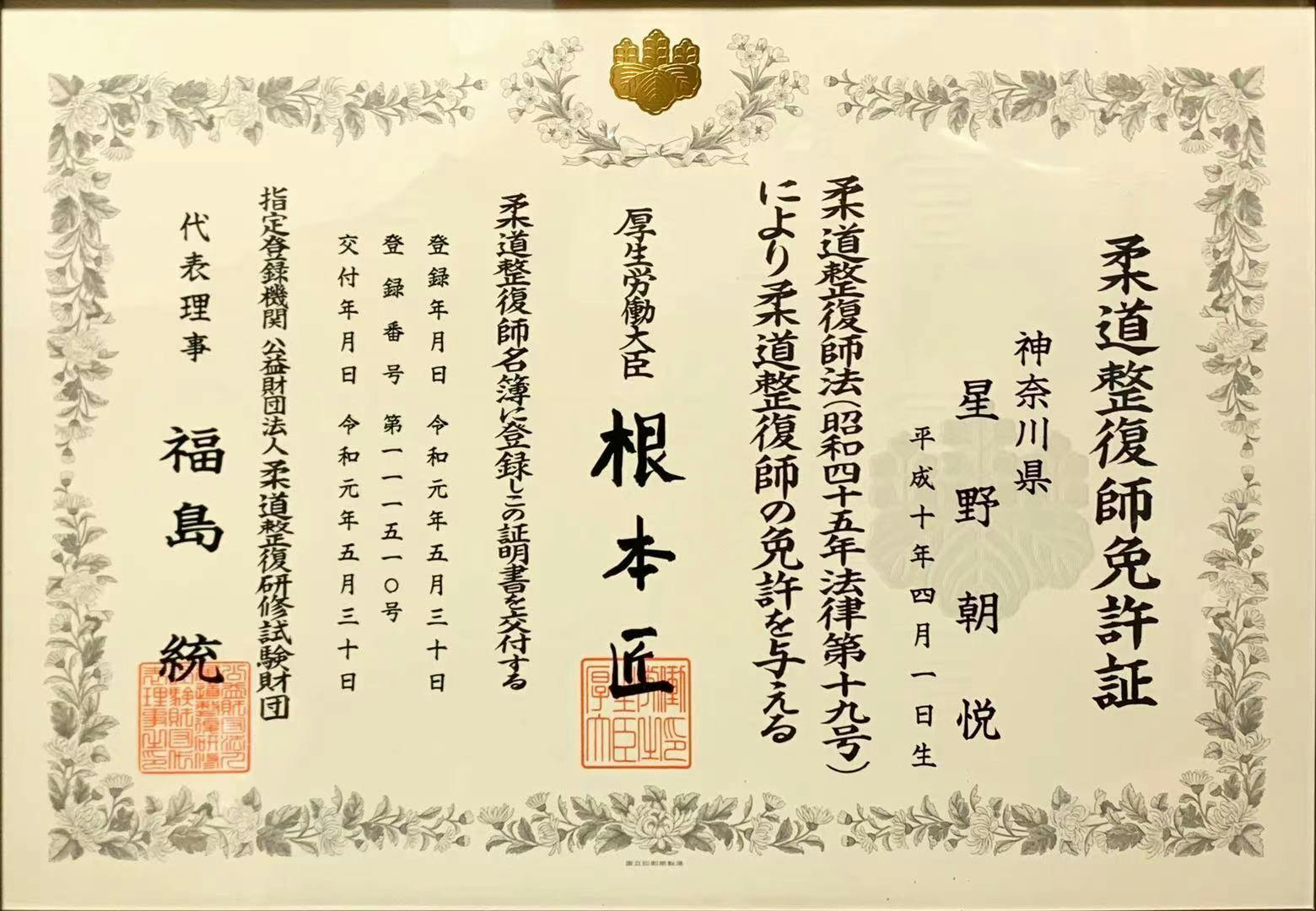 よく練習試合でケガをして、整骨院の先生によく助けてもらいました、そこで先生に憧れて同じく体の悩まれた方の力になりたいと思い、高校卒業後柔道整復師専門学校に進学し3年後無事に国家資格を取得しました。