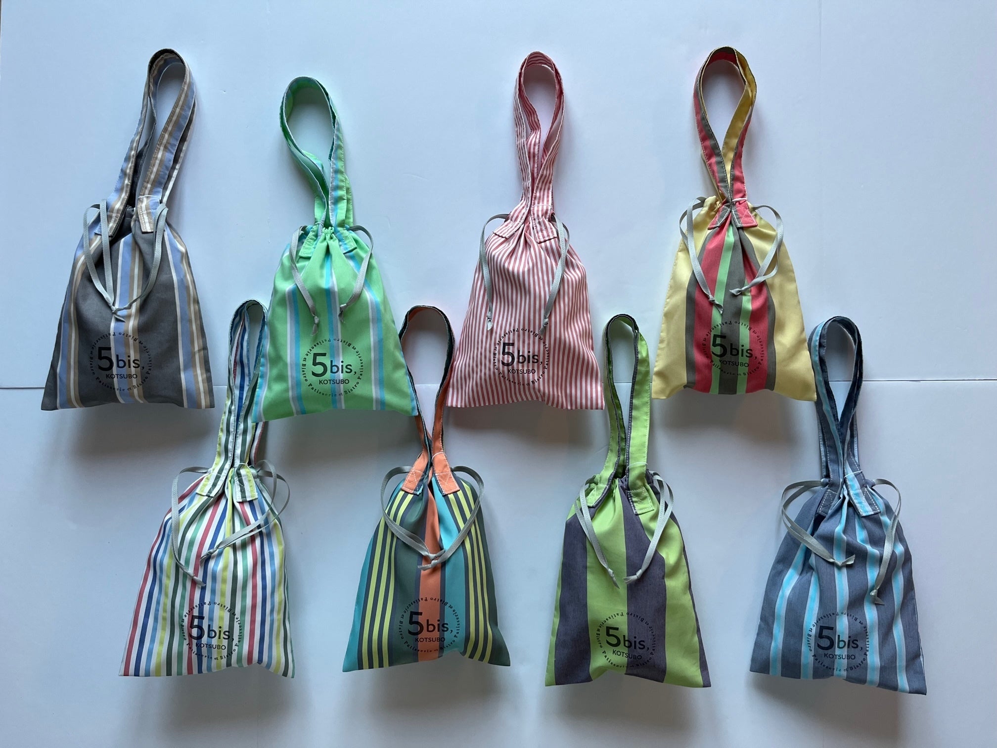 神奈川県逗子でパティスリーを営む友人夫婦と企画した[5bis KOTSUBO 1st anniversary BAG]も【PORTRUNKS】製品のハギレを工夫して作ったBAGです。