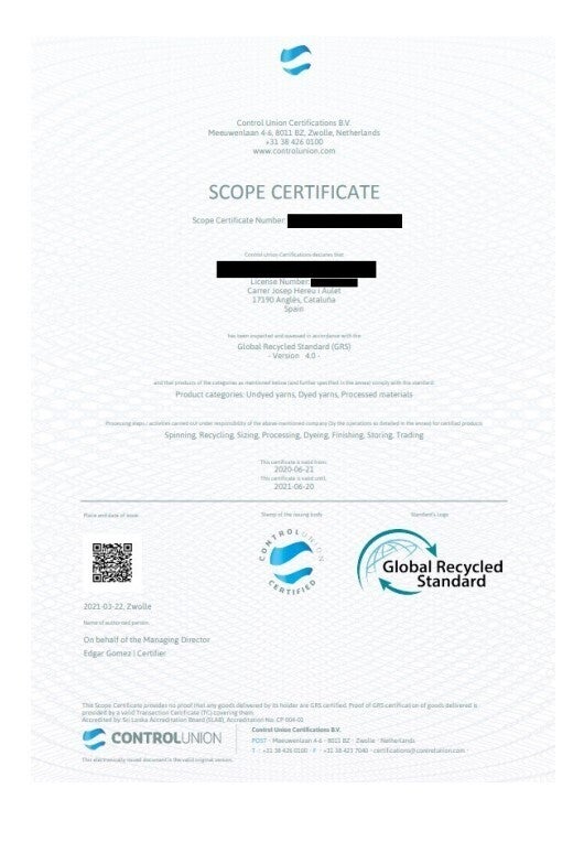 グローバル・リサイクルド・スタンダード (GRS) は 2008 年に Control Union Certifications によって策定されたリサイクル含有物、加工流通過程管理、社会および環境慣行、および化学規制の第三者認証の要件を設定する、国際的基準です。↓*エビデンスの参考