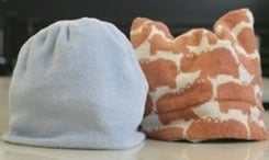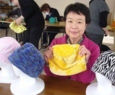 フェイスタオル一枚で出来るタオル帽子は、通気性・吸水性に優れ肌触りも良く患者さんはもとより多くの方々に評判になりました。どこの家庭にでもあるタオルで作る事が出来る手軽さ、色・柄、サイズなど自分の好みでオリジナルの帽子が出来上がります。 *第1回「タオル帽子講習会」は平成21年6月8日に盛岡市で開催されました。