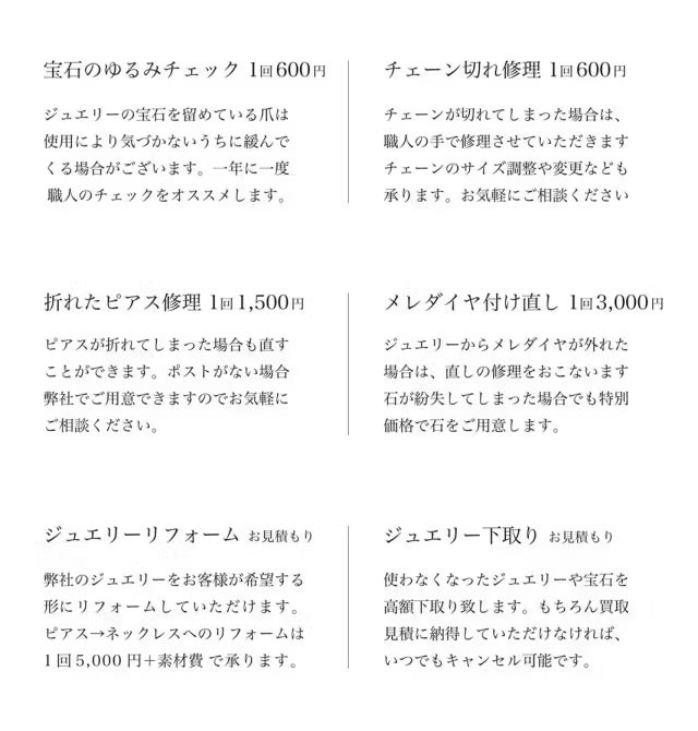 人生で長く身に着ける大切なジュエリーだからこそ 、『購入後』にそのジュエリーやブランドとどう付き合っていくかがとても重要だと考えています。
