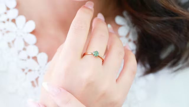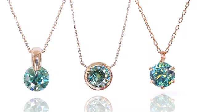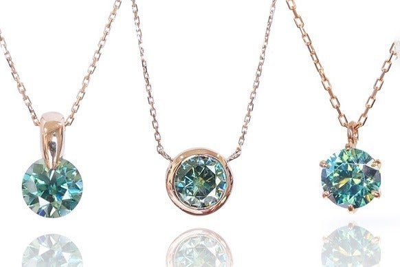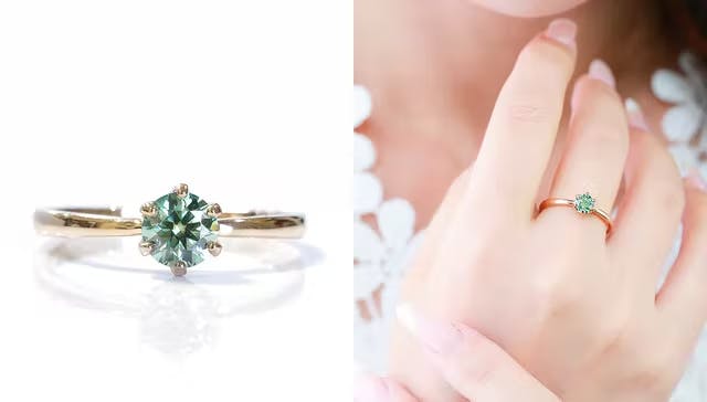 近年、ダイヤモンドを上回るその輝きから、世界中のジュエリーショップでクリアカラーのモアサナイトは取り扱われるようになりましたが、グリーンに輝くモアサナイトはジュエリーショップでも、ほぼ目にすることはないのではないでしょうか?