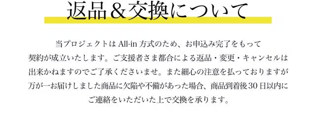 本文中に記載させていただいたスケジュールは、あくまでプロジェクト公開時点の予定です。支援の性質上、配送遅延のおそれがございます。