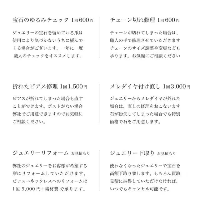 人生で長く身に着ける大切なジュエリーだからこそ 、『購入後』にそのジュエリーやブランドとどう付き合っていくかがとても重要だと考えています。