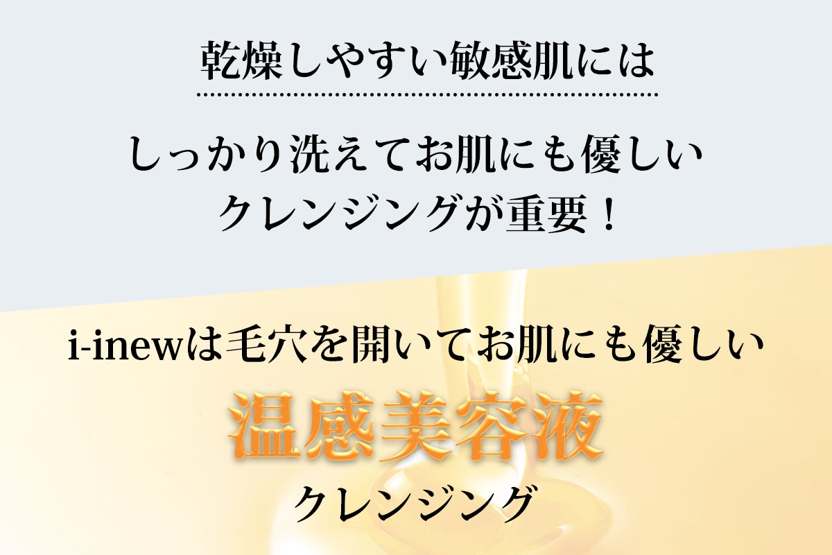 温感ケアは、肌を温めて血行を良くするためにも必要なケアです。 健康な肌のためには、冷え切った肌ではNG。適度に温めて血行を促進する必要がありま す。i-inew ホットクレンジングで マッサージするように洗顔する ことで、肌が温まり、 肌のターンオーバーも促します。