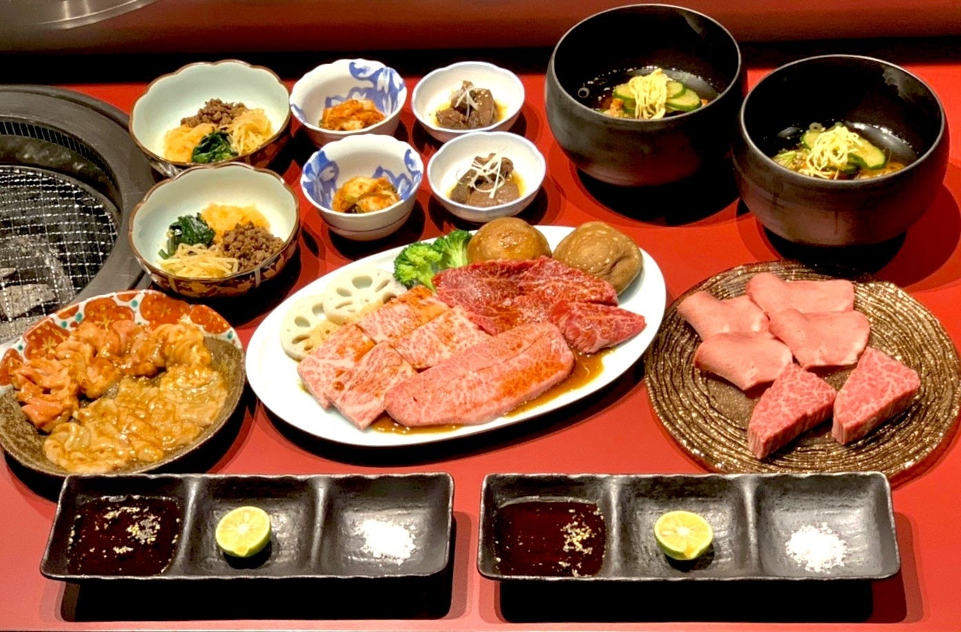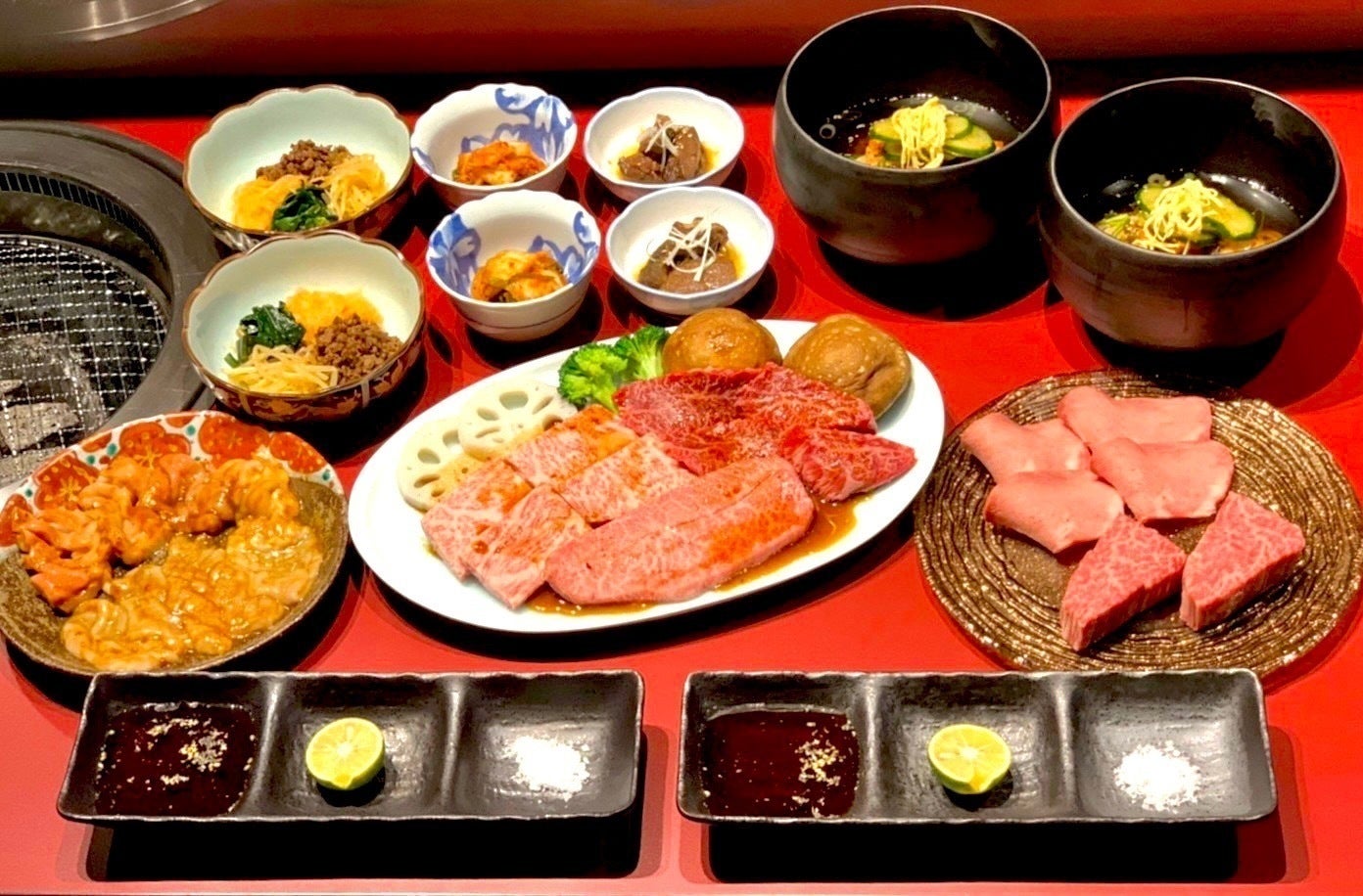 先付3種・特上塩焼き2種・【CAMPFIRE限定】本日のサービス1品・特上赤身3種・ホルモン2種・中央市場直送野菜・特製冷麺・季節のデザート