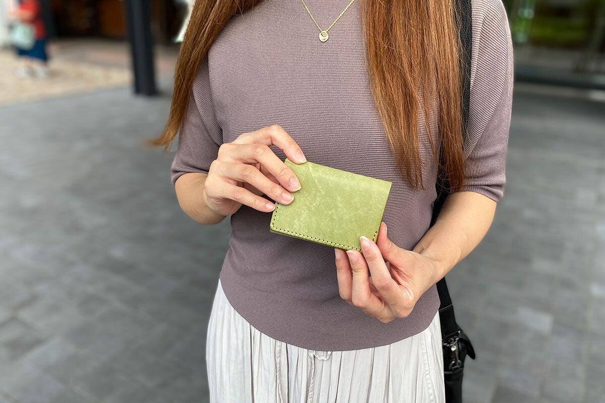 カード枚数に革が馴染むと革が柔らかくなり、収納枚数を減らすとカードが抜けやすくなります。